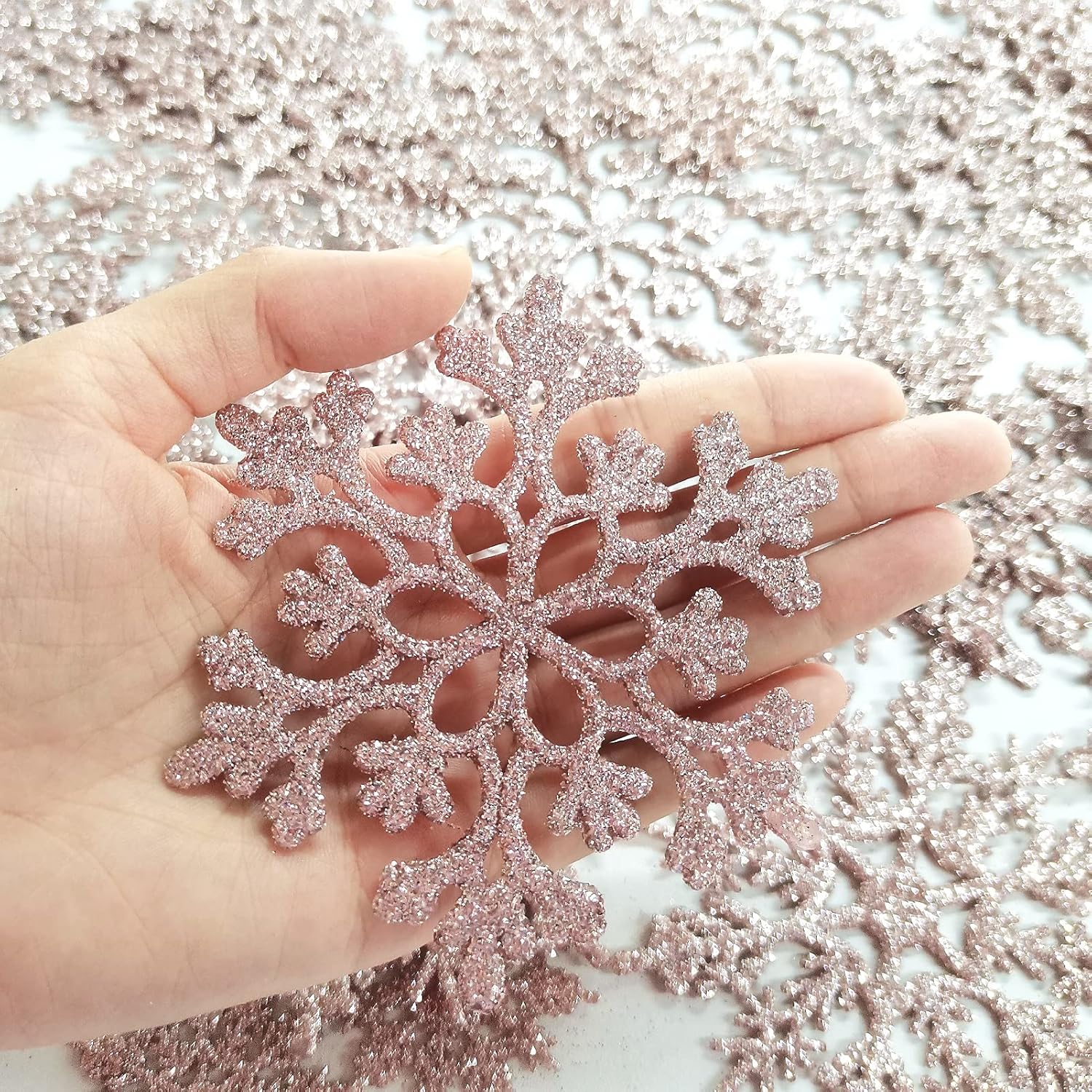 - CHRISTMAS TREE SNOWFLAKES: Featuring sparkly glitters on the surface, these rose gold snowflakes tree ornaments add much more sparkle to your Christmas tree decorations, various sizes give a nicer variety on the tree, just let it snow