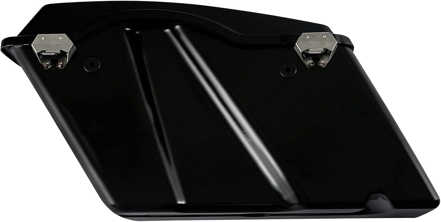 - Material: Made of durable ABS plastic, Vivid Black finish, strong and practical; Left & right stock style lids, fit the saddlebags perfectly and waterproof