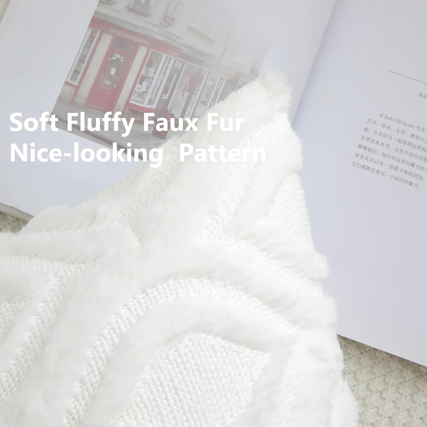 decorUhome Throw Pillow Covers 20x20 Inch Set of 2, Soft Plush Decorative Faux Fur Cream Beige Solid Couch Pillow Covers, Accent Farmhouse Neutral Square Euro Pillow Cases for Sofa Bed Living Room