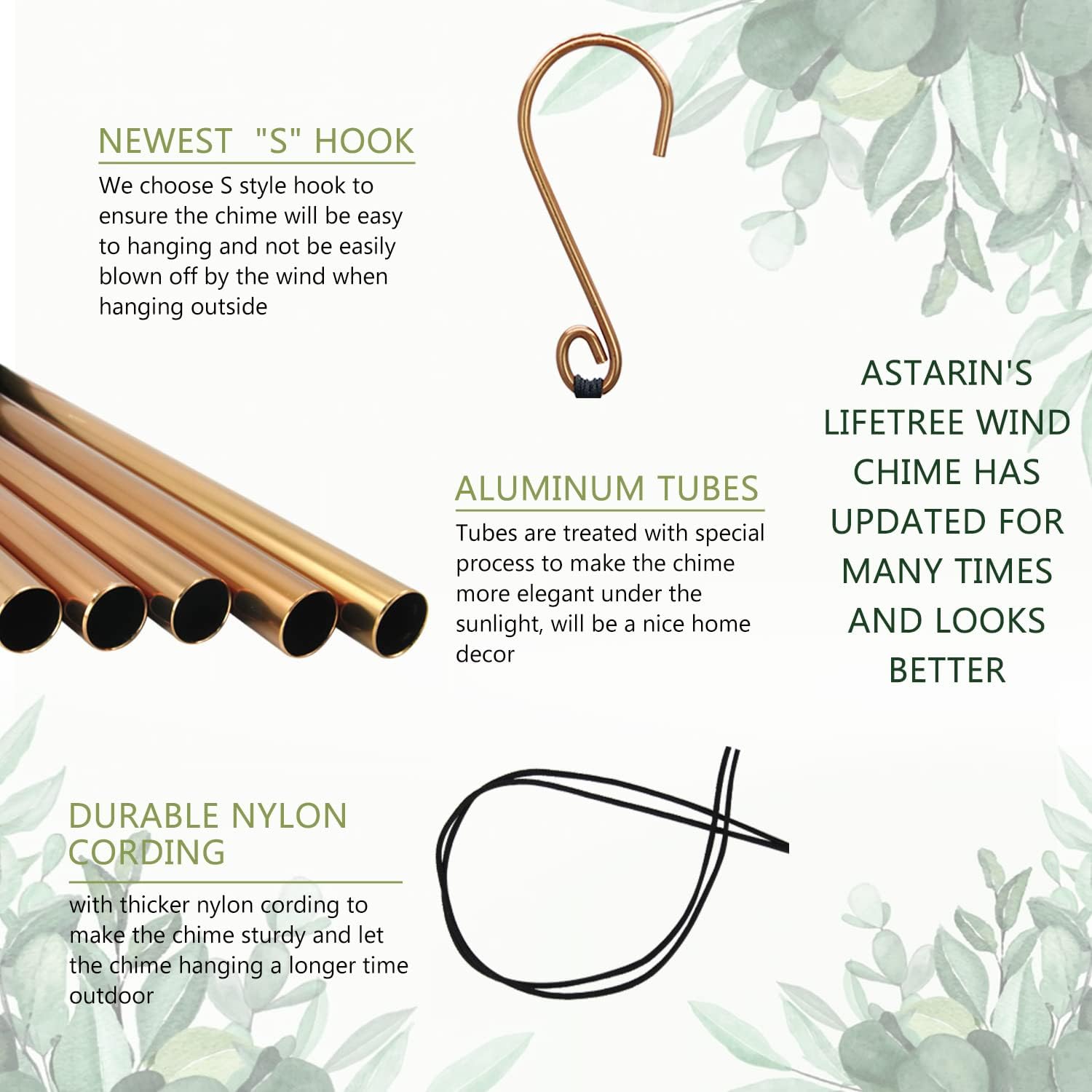 - Melodic Garden Decor--The classic gold-and-green color scheme blends naturally with outdoor settings. Gentle breezes create soft, ever-changing melodies, turning your space into a peaceful retreat. Customers rave: “Guests always ask where we got it!”