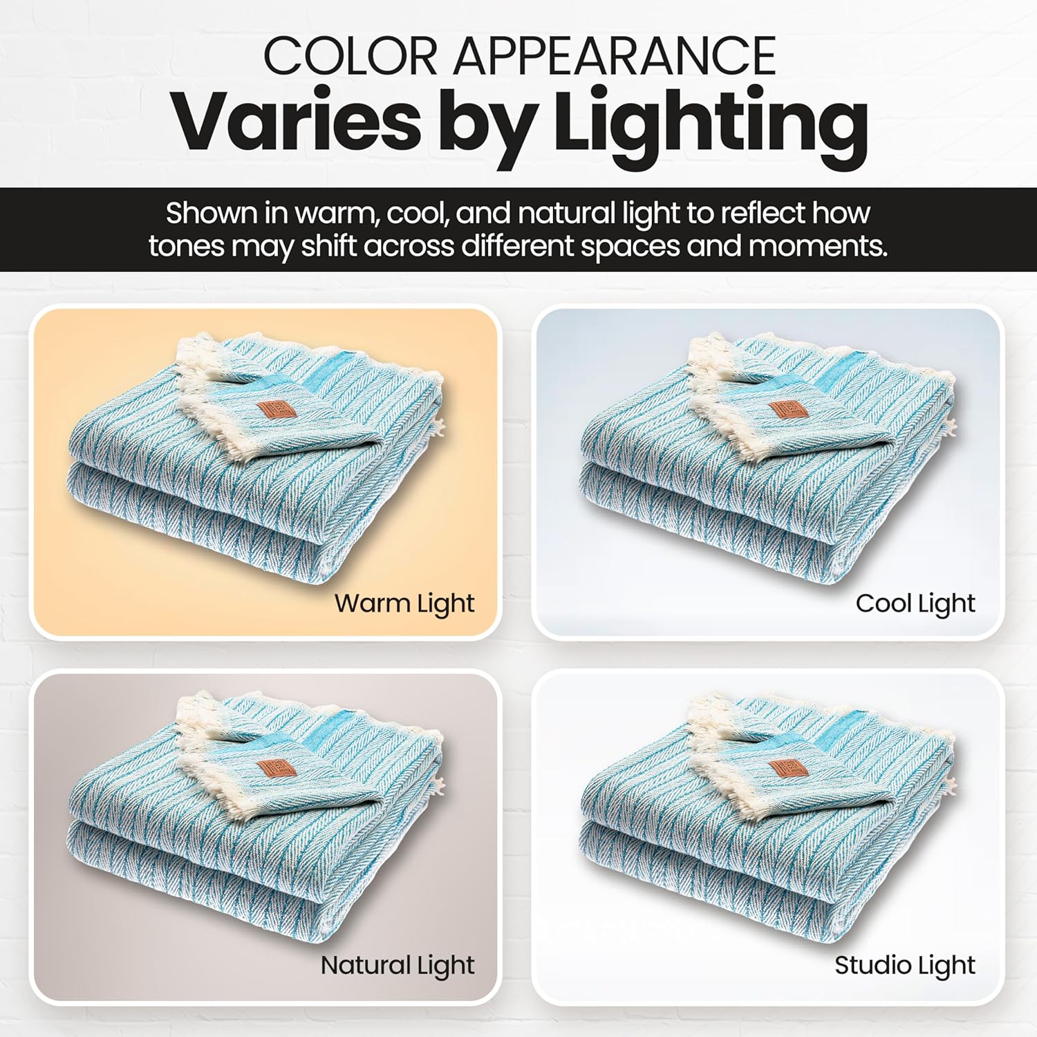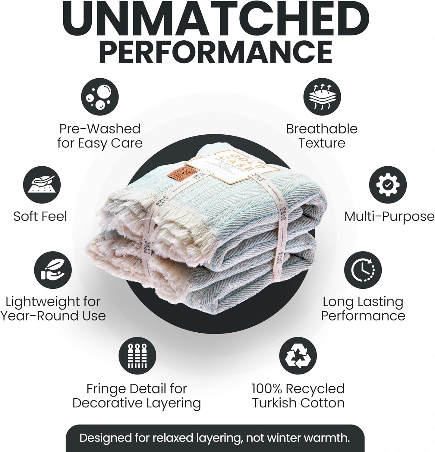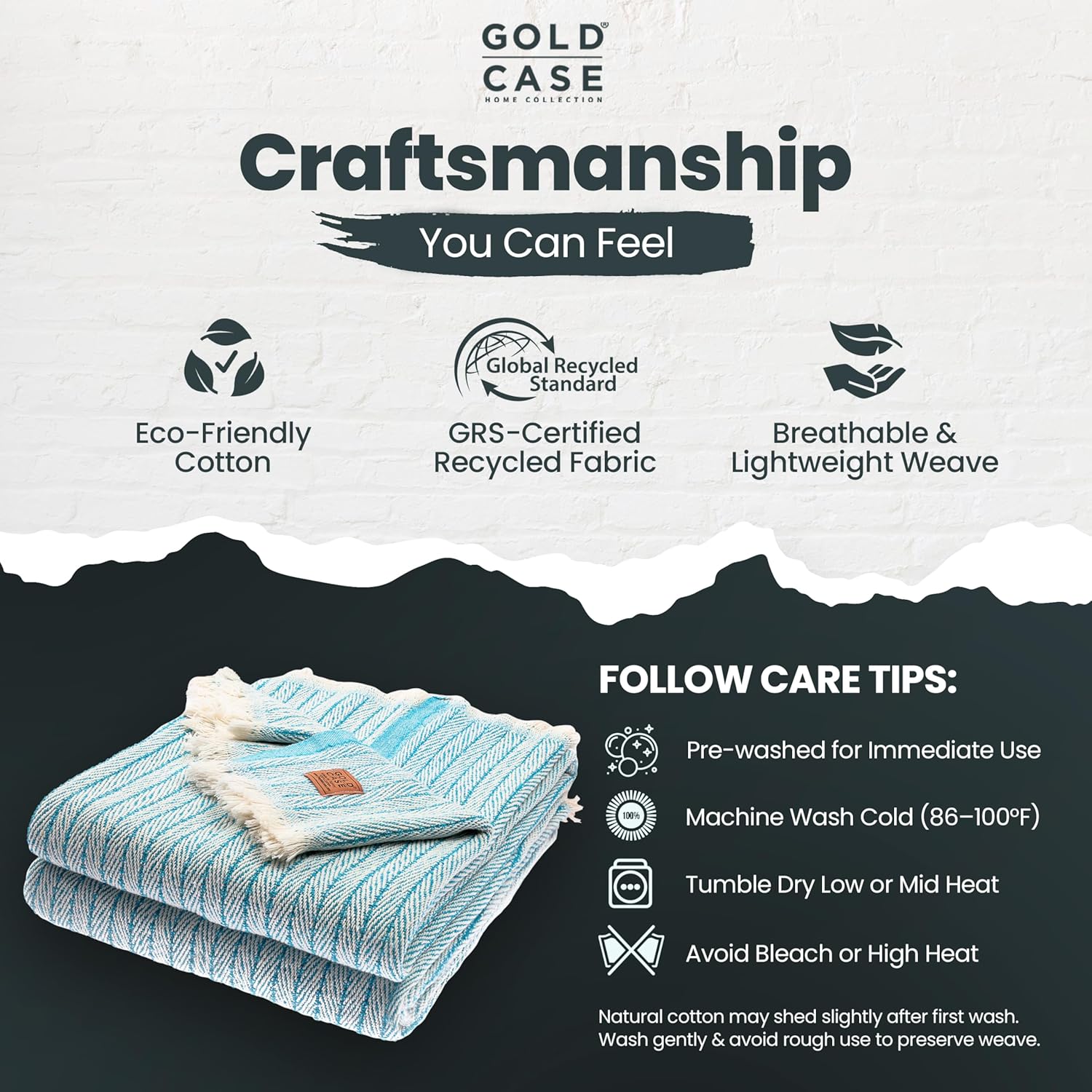 Gold Case Throw Blanket for Couch – 100% Recycled Turkish Cotton Blankets – Elegant Decorative Throw Blankets for Living Room Sofa – Woven Throws for Couch – Vintage Turquoise– 50x60 (Set of 2)