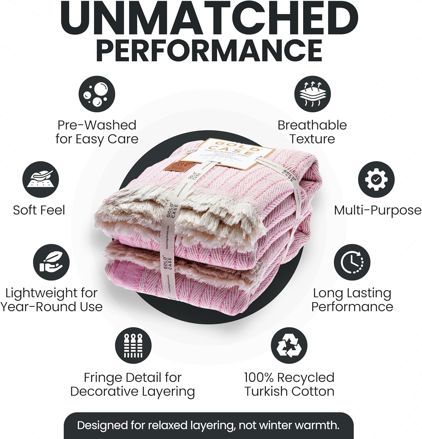 Gold Case Throw Blanket for Couch – 100% Recycled Turkish Cotton Blankets & Throws – Elegant Decorative Throw Blankets for Living Room Sofa – Woven Throws for Couch – Vintage Pink – 50x60 (Set of 2)