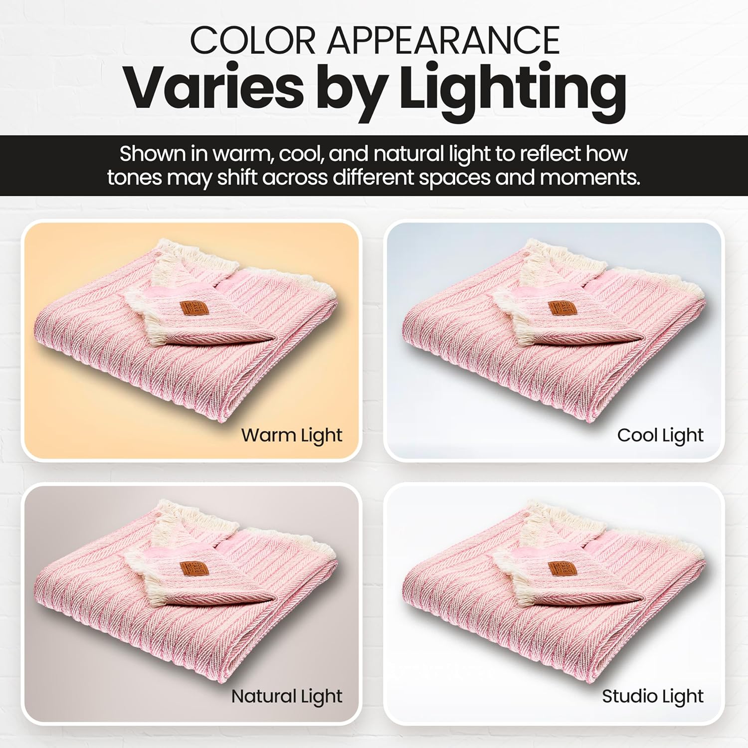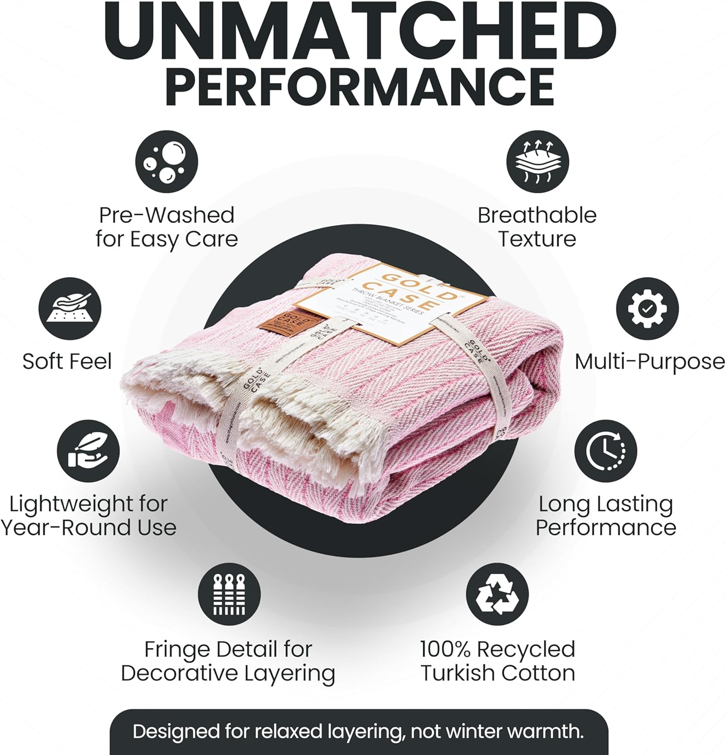 Gold Case Throw Blanket for Couch – 100% Recycled Turkish Cotton Blankets & Throws – Elegant Decorative Throw Blankets for Living Room Sofa – Woven Throws for Couch – Vintage Pink – 60x80