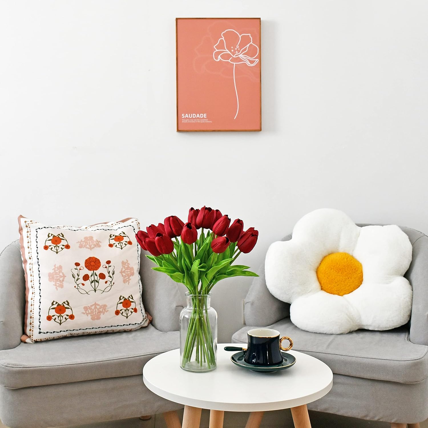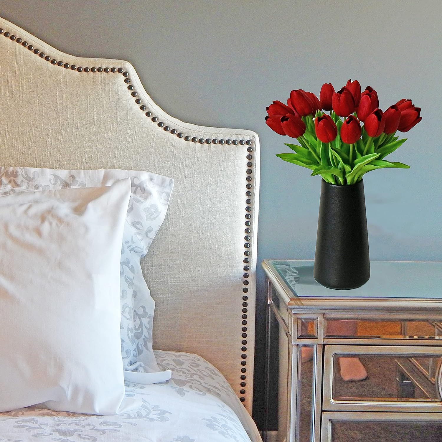 Mandy's Artificial Tulips 20 Stems Burgundy PU Faux Flowers for Wedding Home Decor 13.5 Inch