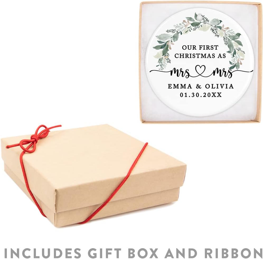 - Personalized Porcelain Ornament: This 2.8 inch round mrs and mrs christmas ornament 2024 features a foliage wreath design with "Our First Christmas As Mrs. & Mrs.," making it a reliable keepsake for newlywed lesbian couple’s first holiday together