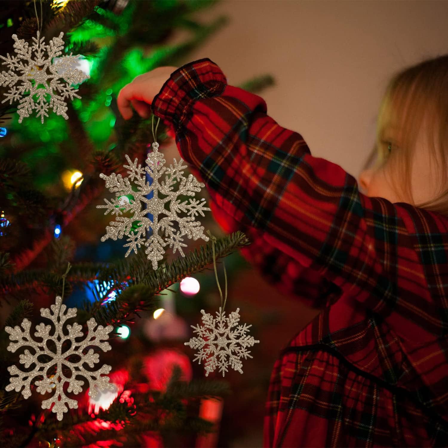 - DESIGNED TO HANG: Big Christmas snowflake ornaments have hole at top for easy hanging except some that are only with the hollow design but they're also able to be hung easily with the string included