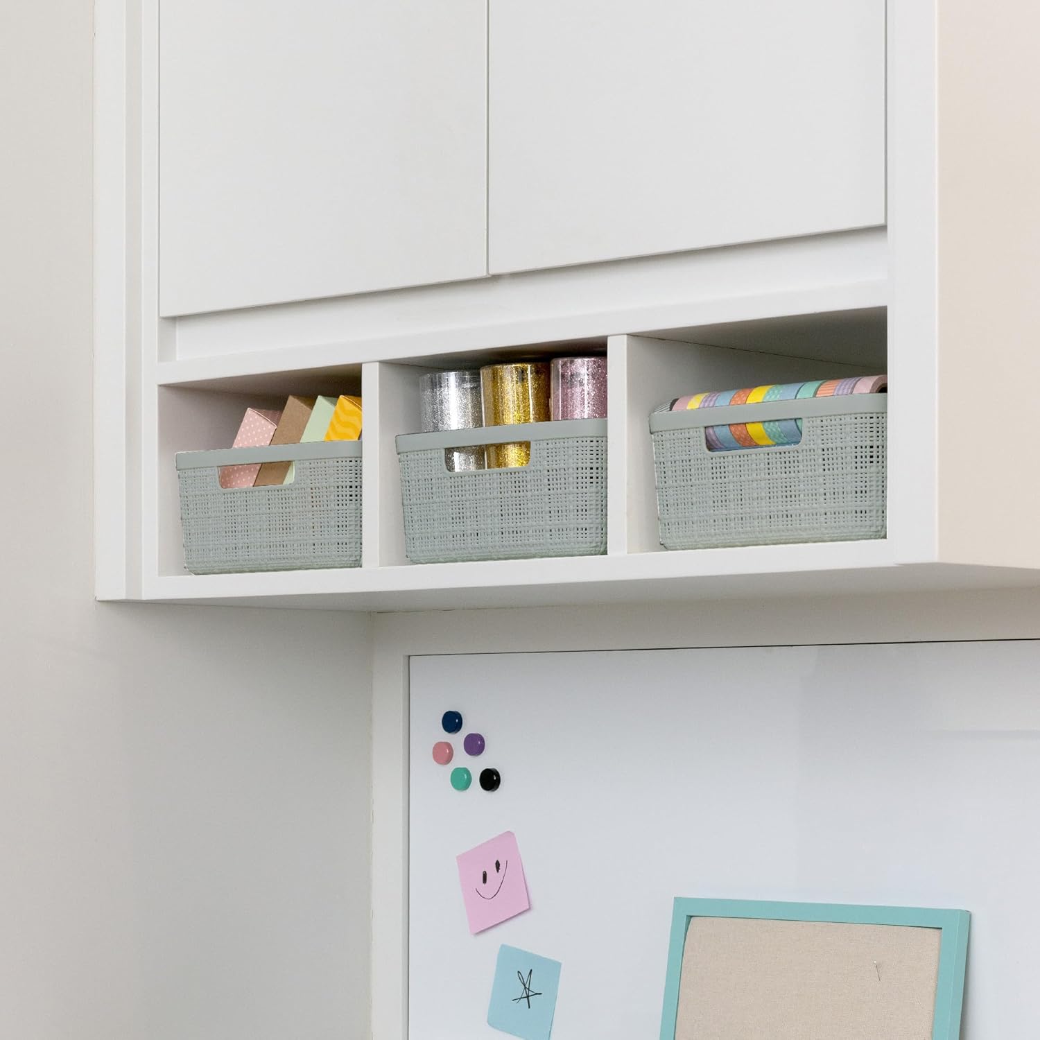 - Ideal for open shelf spaces, office desk organizers, laundry room organization and storage, and craft room storage