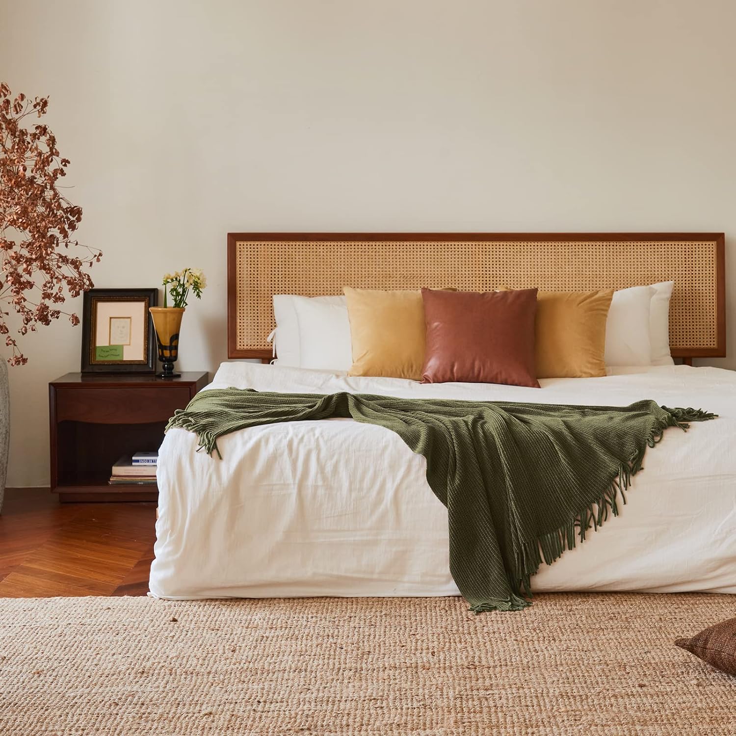 lifein Throw Blanket for Couch, Soft Green Boho Decor Bed Throw,Cozy Knitted Chenille Farmhouse Lightweight Throw for Spring(Olive Green,50 * 60")