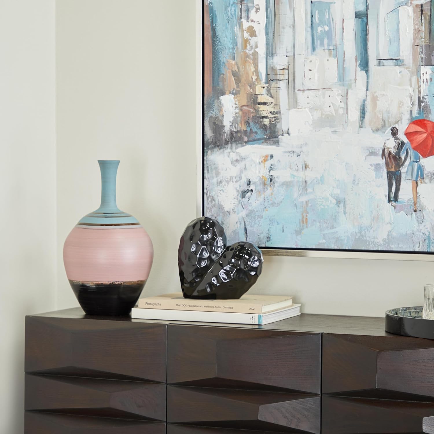 Deco 79 Porcelain Ceramic Heart Decorative Sculpture Dimensional Angled Origami Inspired Home Decor Statue, Accent Figurine 8" x 3" x 8", Black