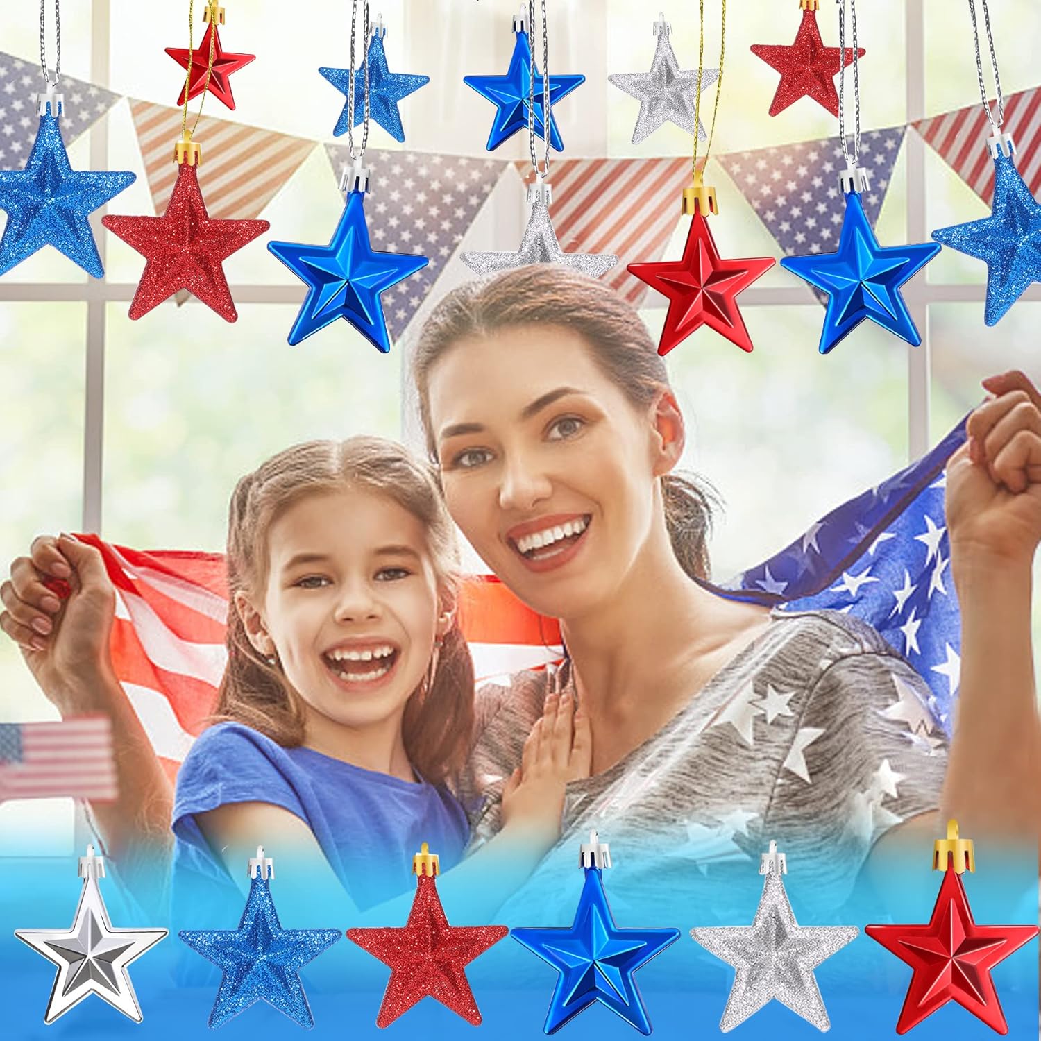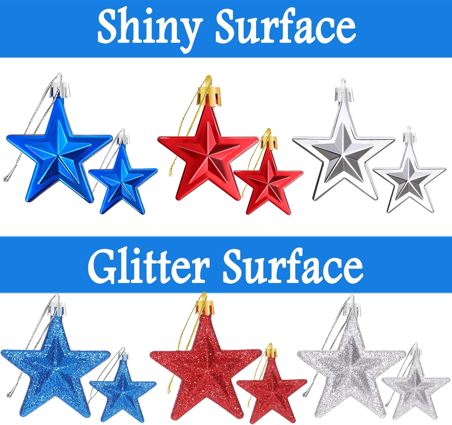 - Durable Material: The star shaped hanging ornaments are made of durable plastic with vivid printing, eye-catching. The design of the facade makes the stars distinct, the color design of red, blue and silver can be well matched with the decoration of other patriotic themes. Can be used multiple times.