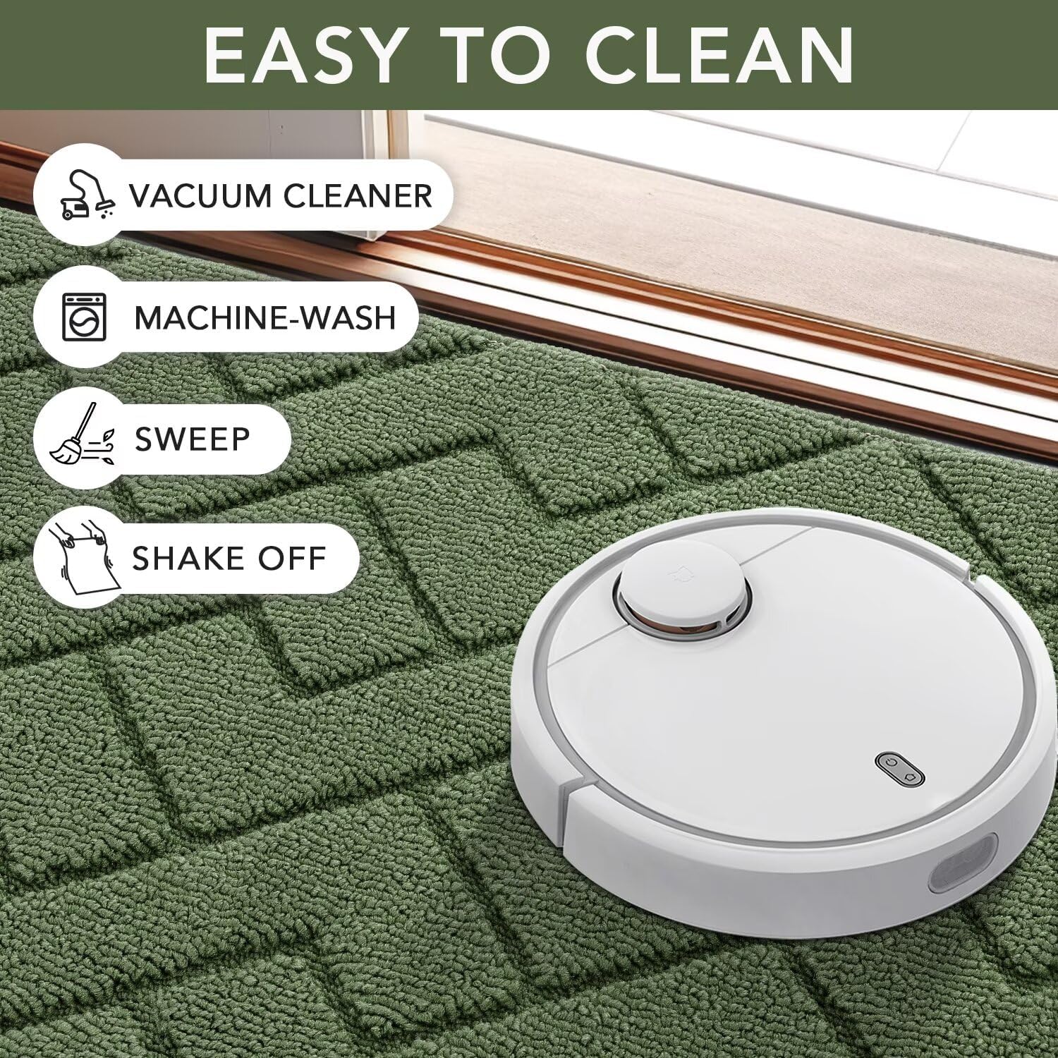hicorfe Indoor Doormat,Front Back Door Mat Rubber Backing Non Slip Door Mats 24"x35" Absorbent Resist Dirt Entrance Doormat Inside Floor Mats for Entryway Washable Low-Profile(Green)