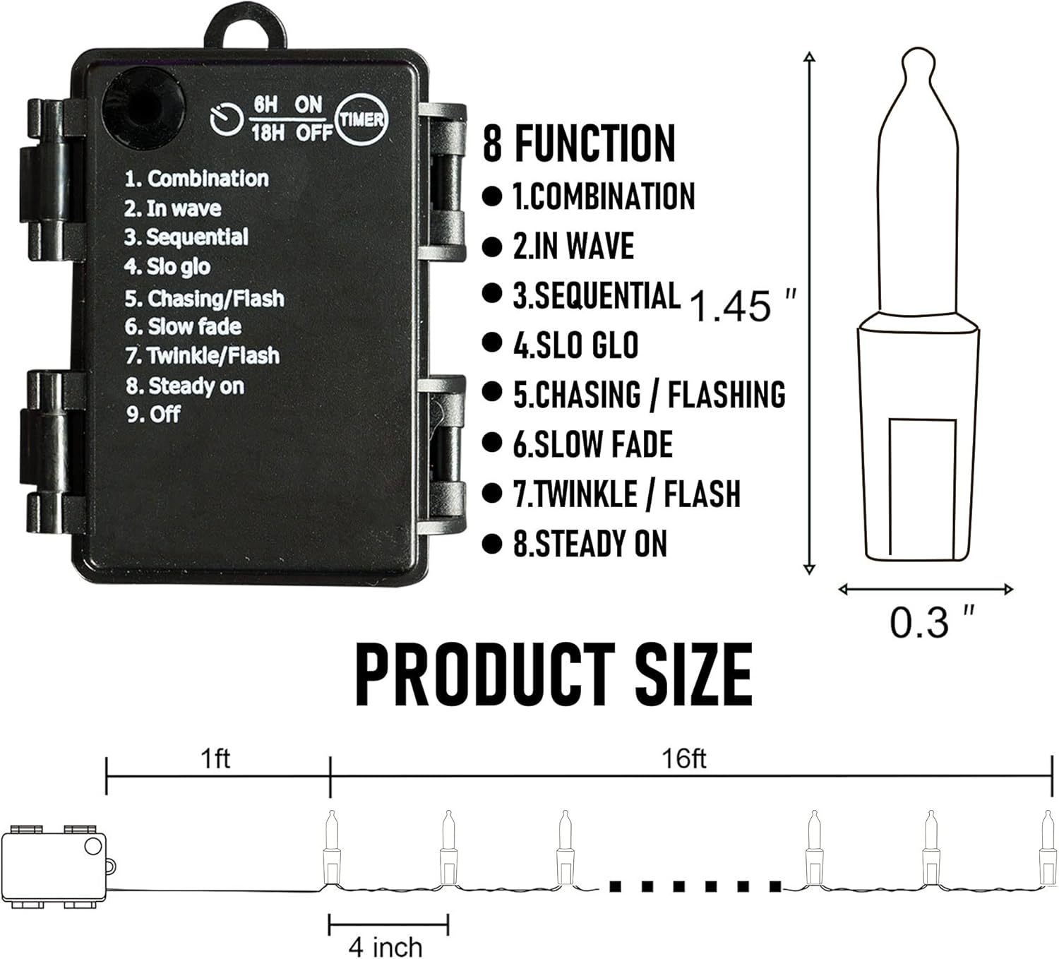 - 8 Lighting Modes: Dazzle Bright mini string lights has 8 different lighting methods, including combination, in wave, sequential, slo glo, chasing/flash, slow fade, twinkle/flash, steady on. Press the button on the battery box to select the lighting mode you like.