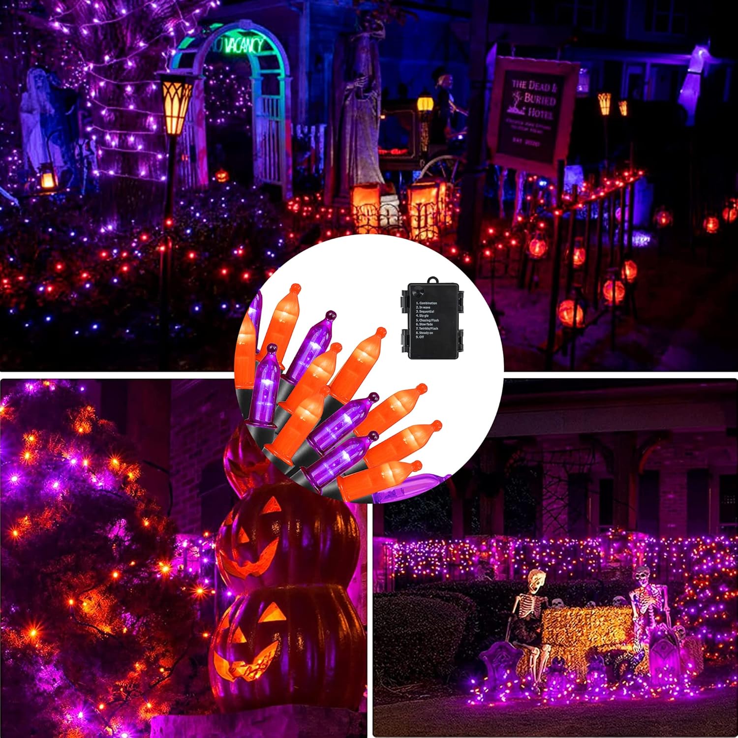 Dazzle Bright Purple and Orange Battery Operated 50 LED 16FT Waterproof Mini String Lights with 8 Modes - Indoor/Outdoor Halloween Decorations