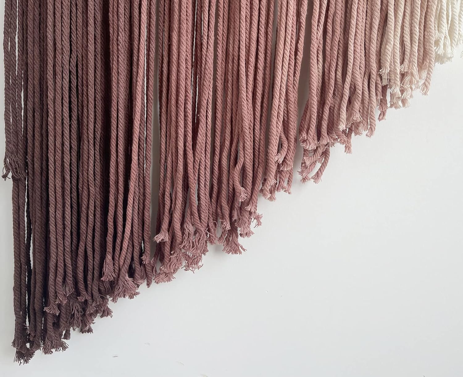 - DESIGN: Pink Dip Dye Round Wall Hanging, this unique round wall hanging is handcrafted with 100% cotton edge cord (4mm cotton thread). Each yarn is carefully hand-dyed. Semicircular wood including frame.