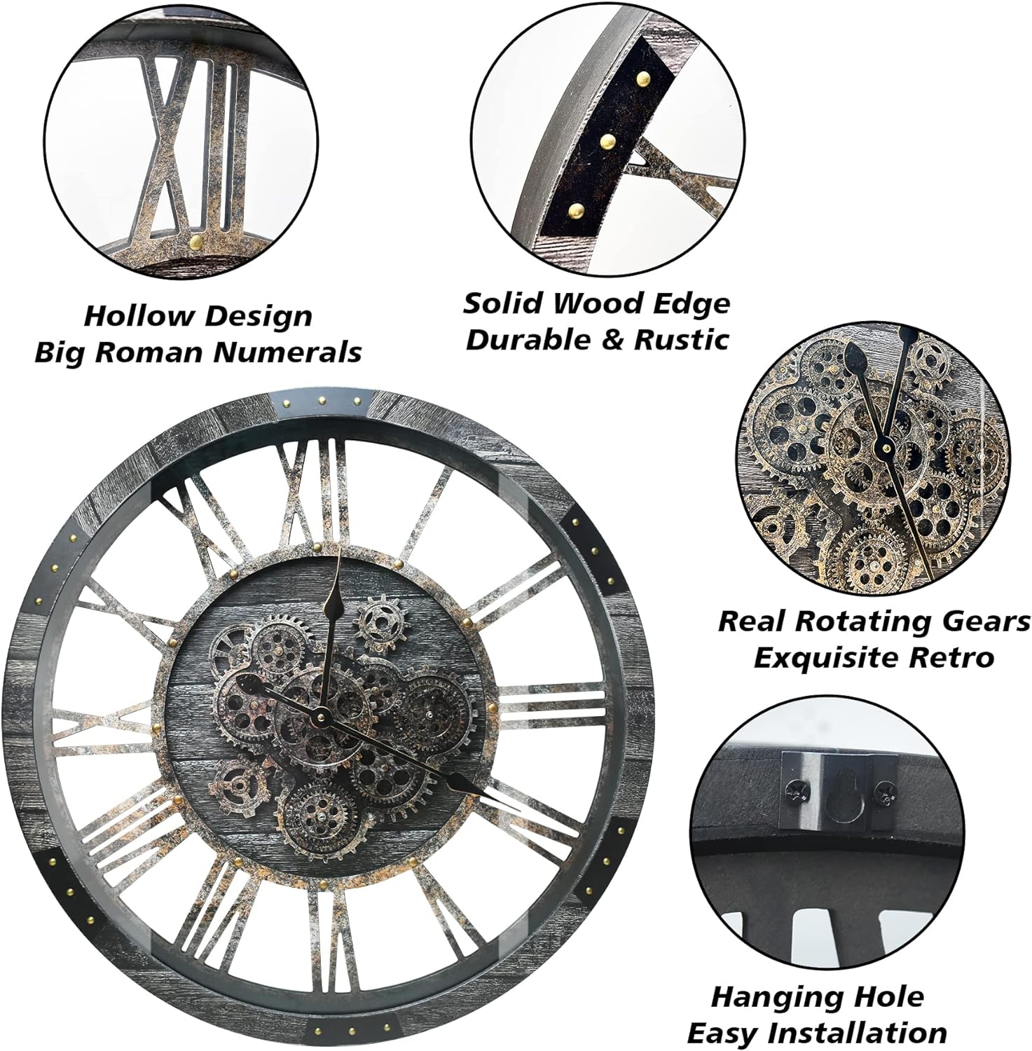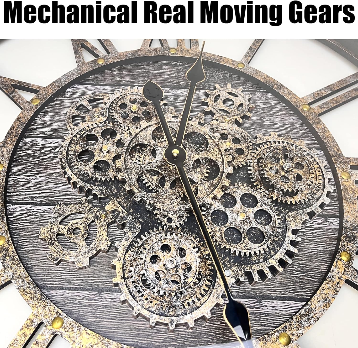 - Real Moving Gears Wall Clock: The big rustic wall clock is designed with multi-real moving gears, put battery in, various gears start working, makes a subtle relaxing sound and makes a living element in the environment in where it is placed, vintage and magical, catch all eyes of visitors