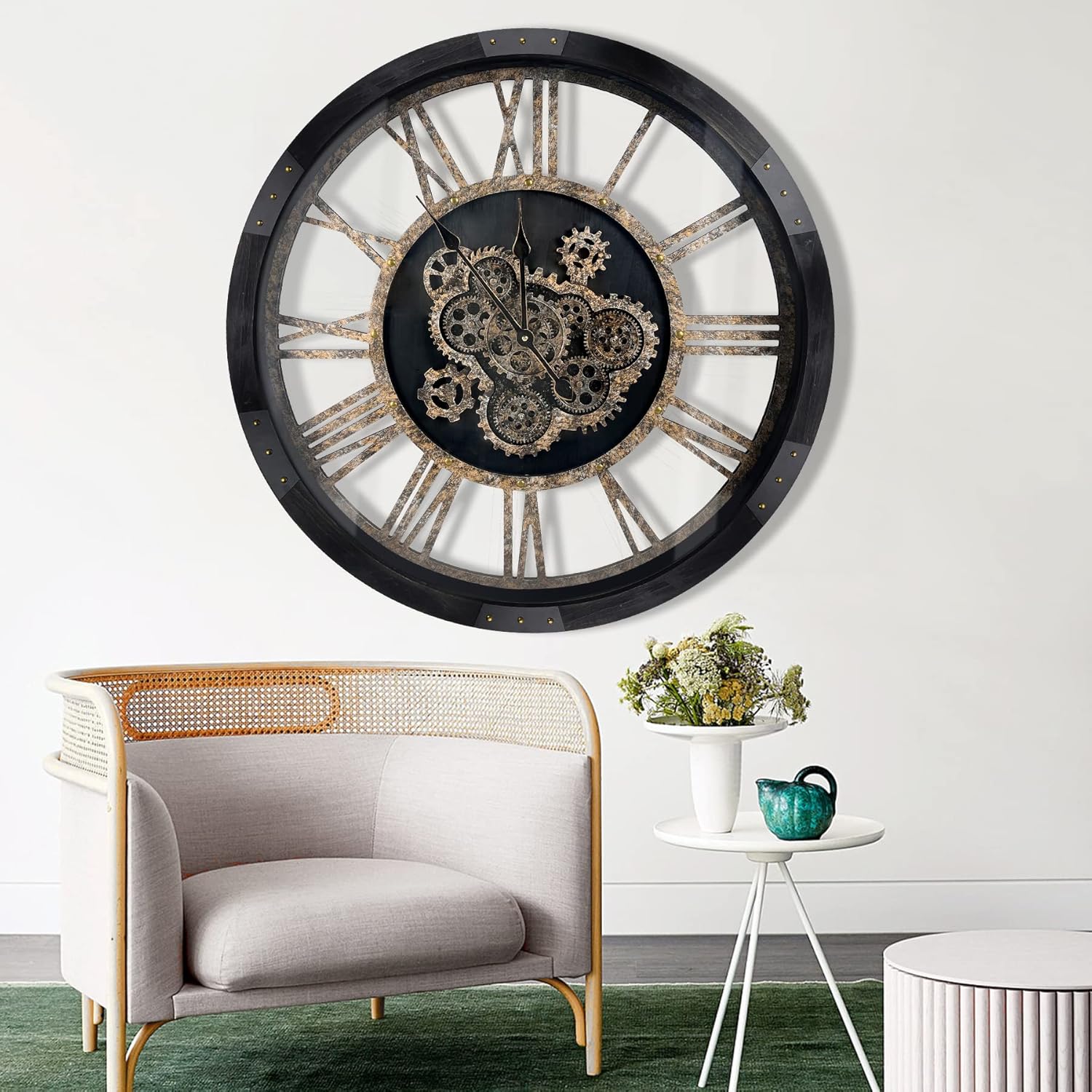 - Real Moving Gears Wall Clock: The extra large wall clock is design with multi-real moving gears, put battery in, various gears start working, makes a living element in the environment in where it is placed, vintage and magical, catch all eyes of visits
