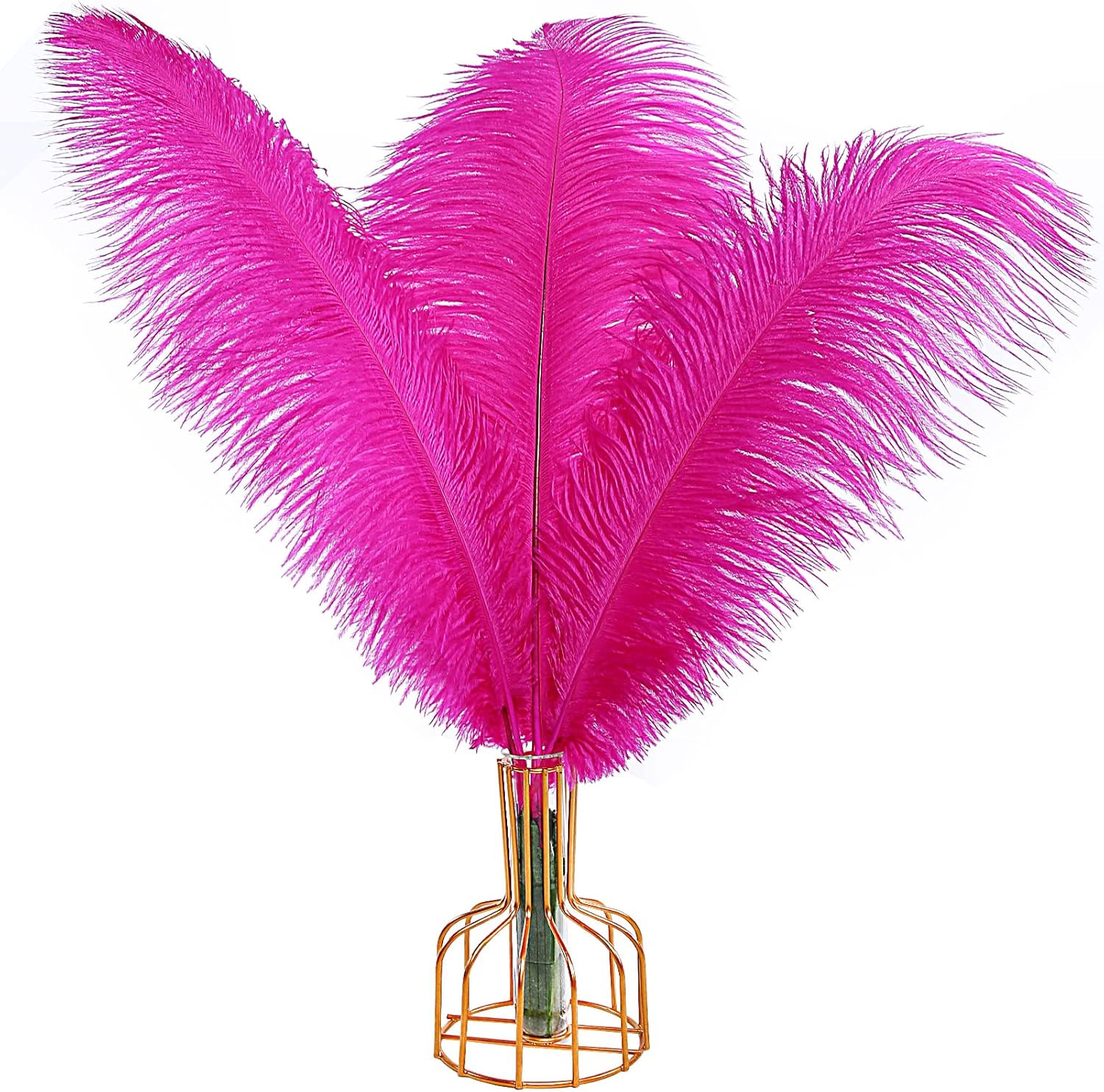 THARAHT 12pcs Hot Pink Ostrich Feathers Natural Bulk 14-16Inch 35cm-40cm for Wedding Party Centerpieces Easter Gatsby and Home Decorate Ostrich Feathers