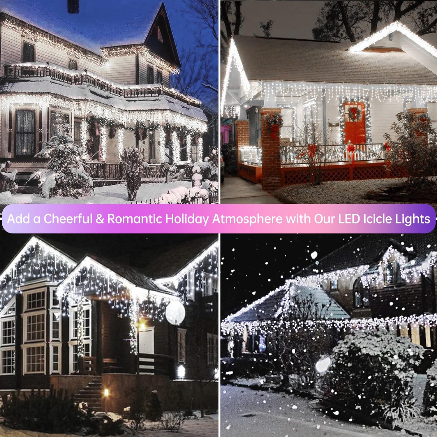 Icicle Christmas Lights Outdoor Decorations 640 LED 65.6 FT 8 Modes LED Icicle String Light with 120 Drops, Fairy String Curtain Lights for Christmas Holiday Decor Wedding Party (Cold White)