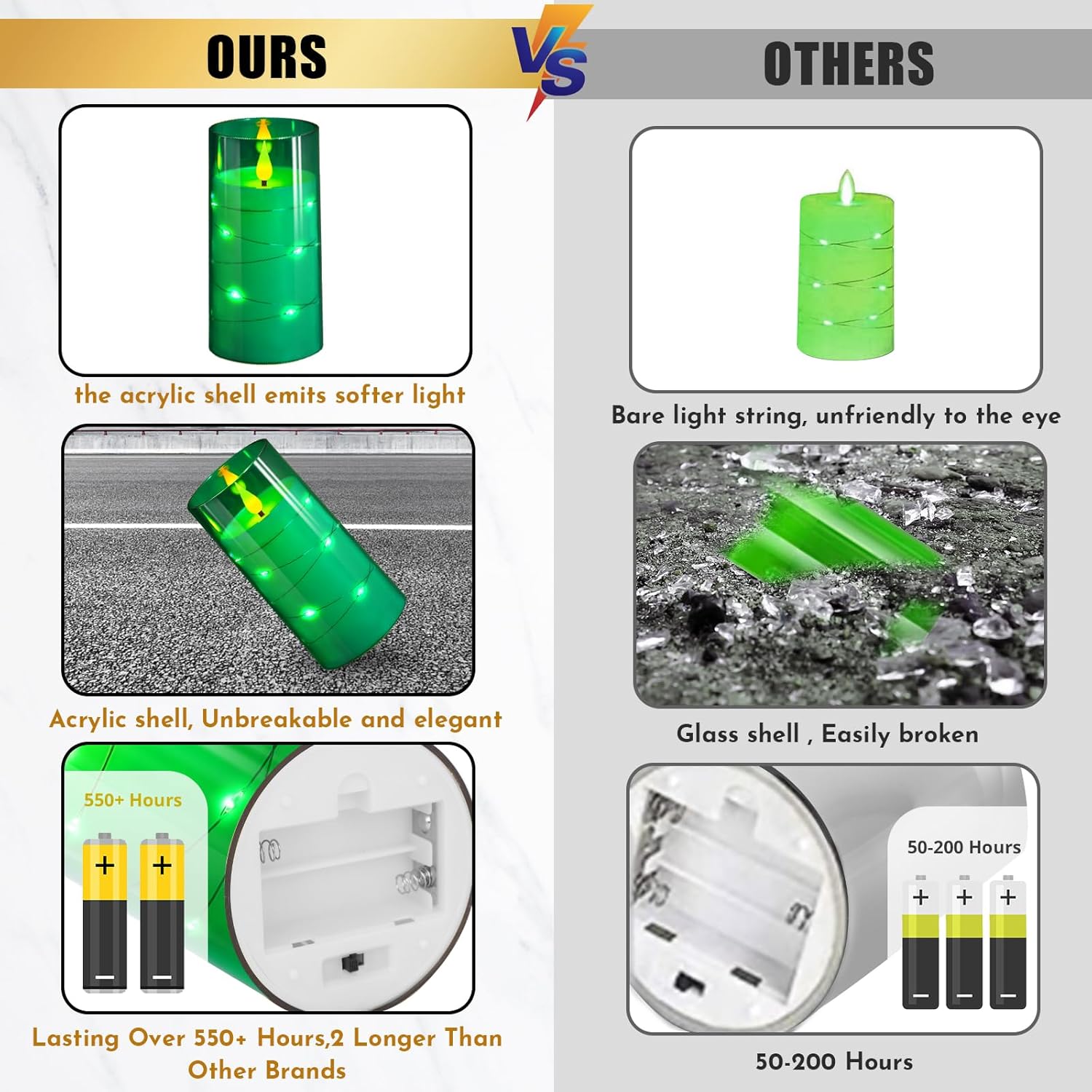 - 【Unbreakable Material, Realistic Appearance】flameless candles are made of high quality acrylic. Compared with glass radiance candles, acrylic shells make the battery candles stronger and lighter. Through the clear shell, you can see the real flame effect