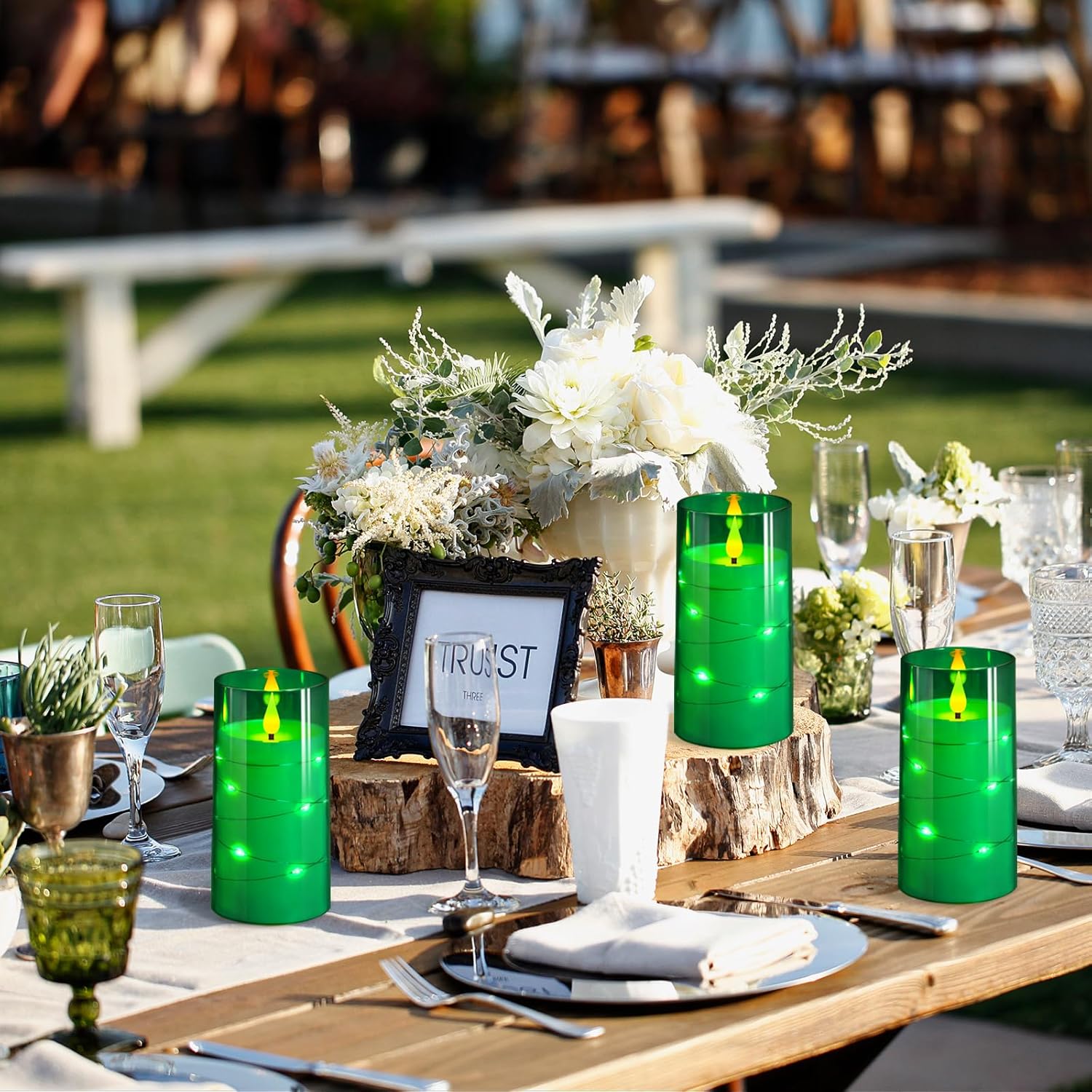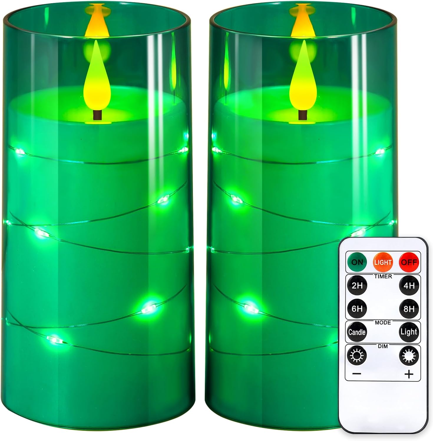 NURADA Flickering Flameless Candles: Built-in Star String Acrylic Battery LED Pillar Candles Candles with Remote and Timer for Home Party Weddings Christmas Halloween Decor -Green 2 Pack
