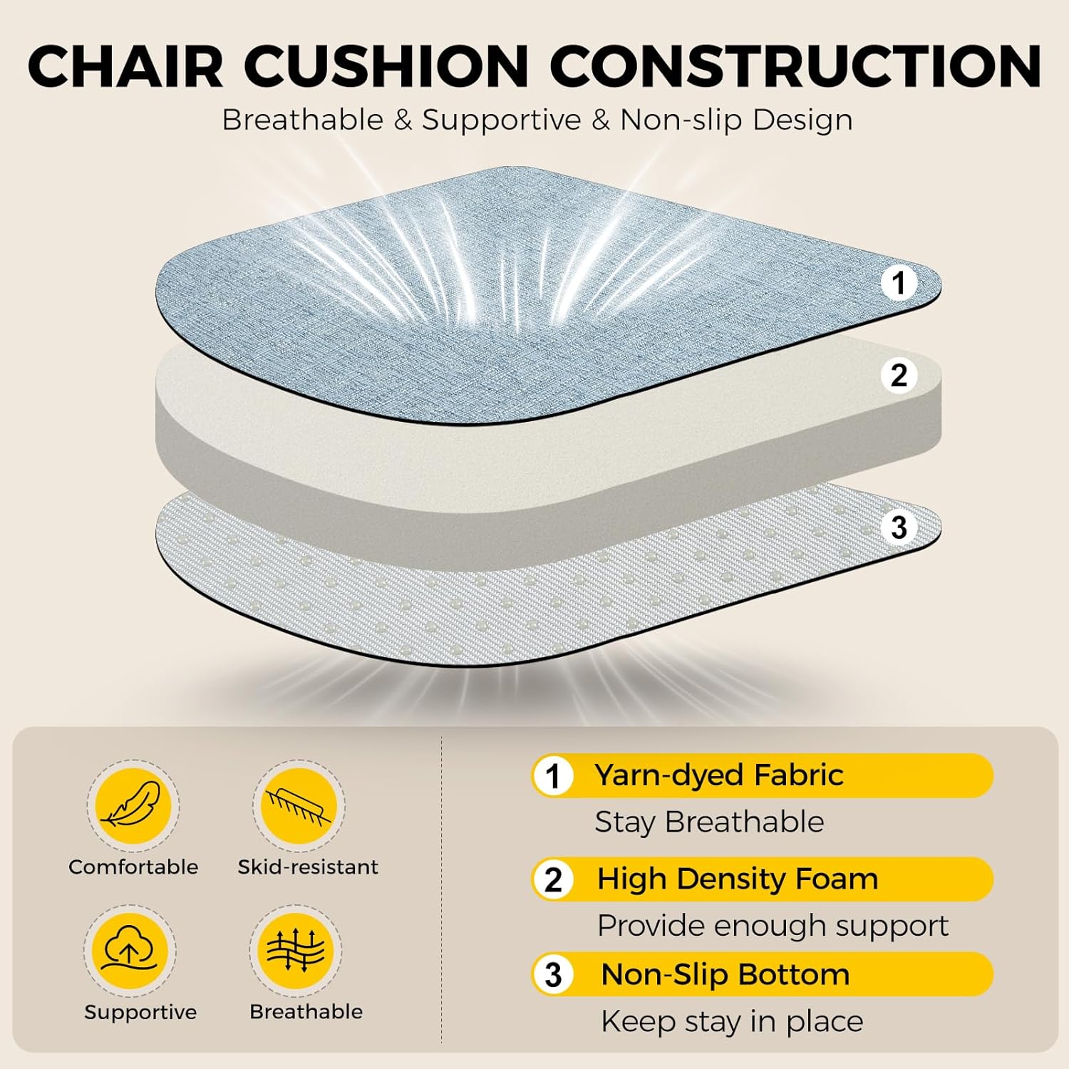 - Stay in Place: Attached ties and non-slip silicone bottom can double keep the seat cushion in place absolutely to prevent it from sliding. You don't need to adjust the dining chair cushions many times and just concentrate on enjoying your life