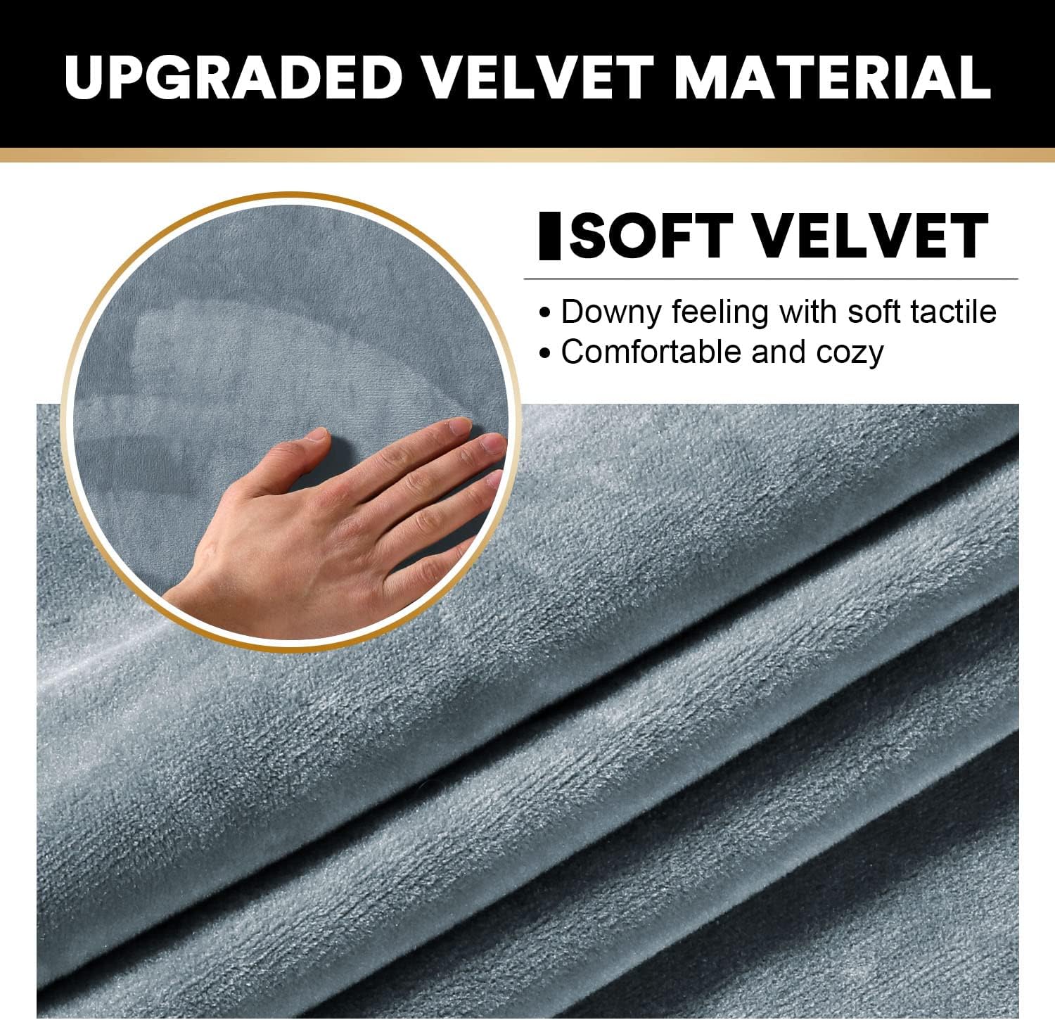 PrinceDeco Sectional Couch Covers 3 Pieces Velvet Sofa Covers L Shape Soft Couch Covers for Sectional Sofa Corner Sofa Cover Couch Cover for Dogs Washable (2 Seater + 1 Chaise,Stone Blue)