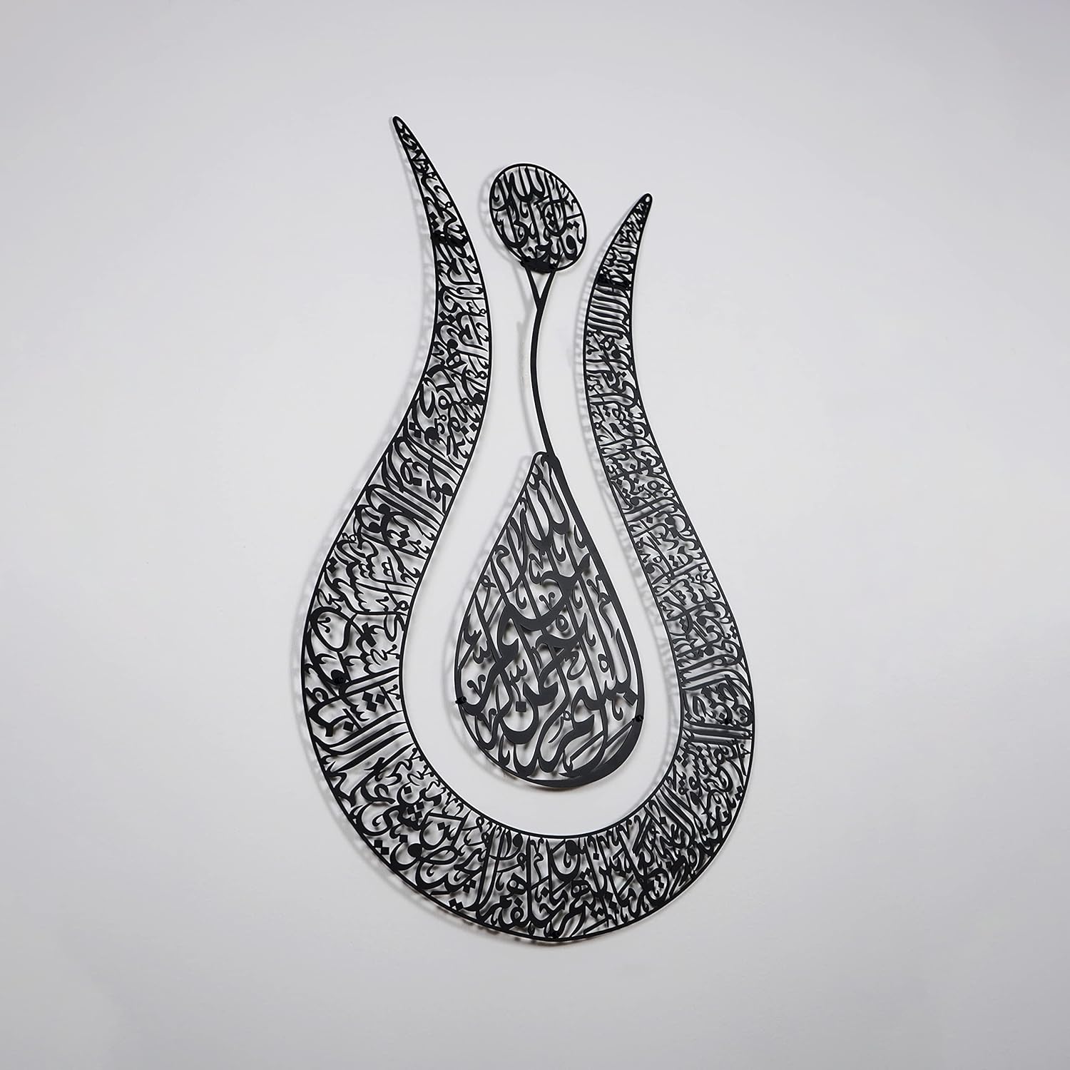 IWA Concept Ayatul Kursi Islamic Wall Art Tulip Shaped | Islamic Home Decor, Art, Calligraphy, Muslim Gifts (67 x 43 cm | 26.8 x 17.2 inches, Full Black)