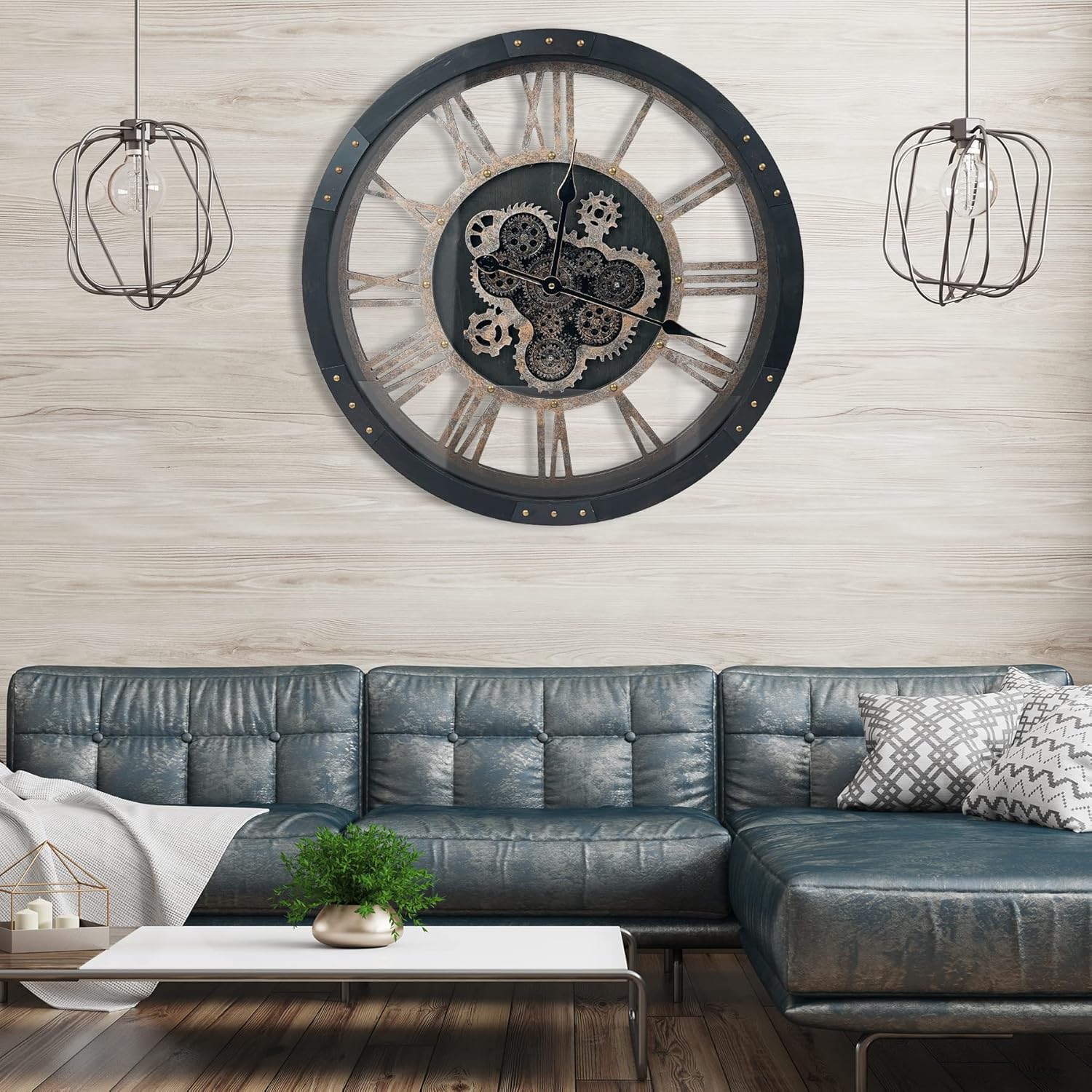 - Real Moving Gears Wall Clock:The 24 inch rustic wall clock is design with multi-real moving gears, put battery in, various gears start working, makes a subtle relaxing sound and makes a living element in the environment in where it is placed, vintage and magical, catch all eyes of visits