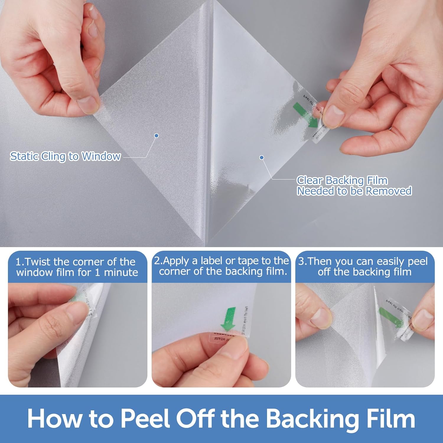 - NO GLUE & Reusable: No glue design keeps you away from the trouble of toxic chemical glue. Static cling window film is easy to install and remove without any residue. More important, you can remove and use it again. The more water you use, the firmer the privacy window film will stick, soapy water is better. For more information on how to install privacy window film, you can refer to our detailed page.
