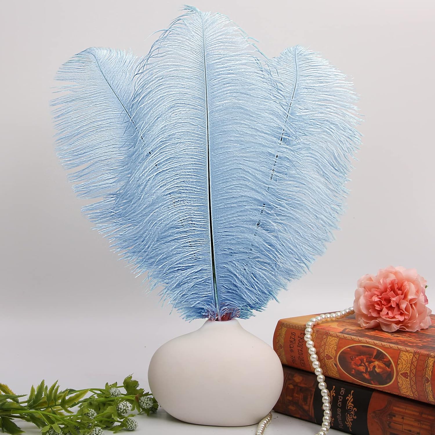 THARAHT Baby Blue Ostrich Feathers 12pcs Large Natural Bulk 14-16Inch 35cm-40cm for Wedding Party Centerpieces Easter Gatsbi and Home Decoration Feathers