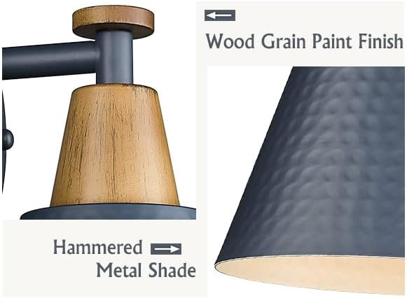 - 【Modern & Industrial Design】This wall sconces with wood grain paint finish mixed hammered metal shade looks elegant enough but not too fancy which give people a clean look