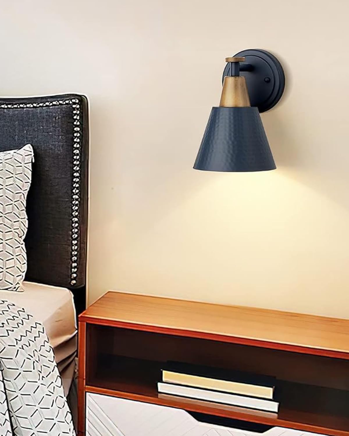 FEMILA 1-Light Wall Sconces, Modern Sconces Wall Lighting with Hammered Metal Shade, Bathroom Vanity Light Fixtures Wall Lamp for Mirror Bedroom, Dark Blue,4FG59B Blue
