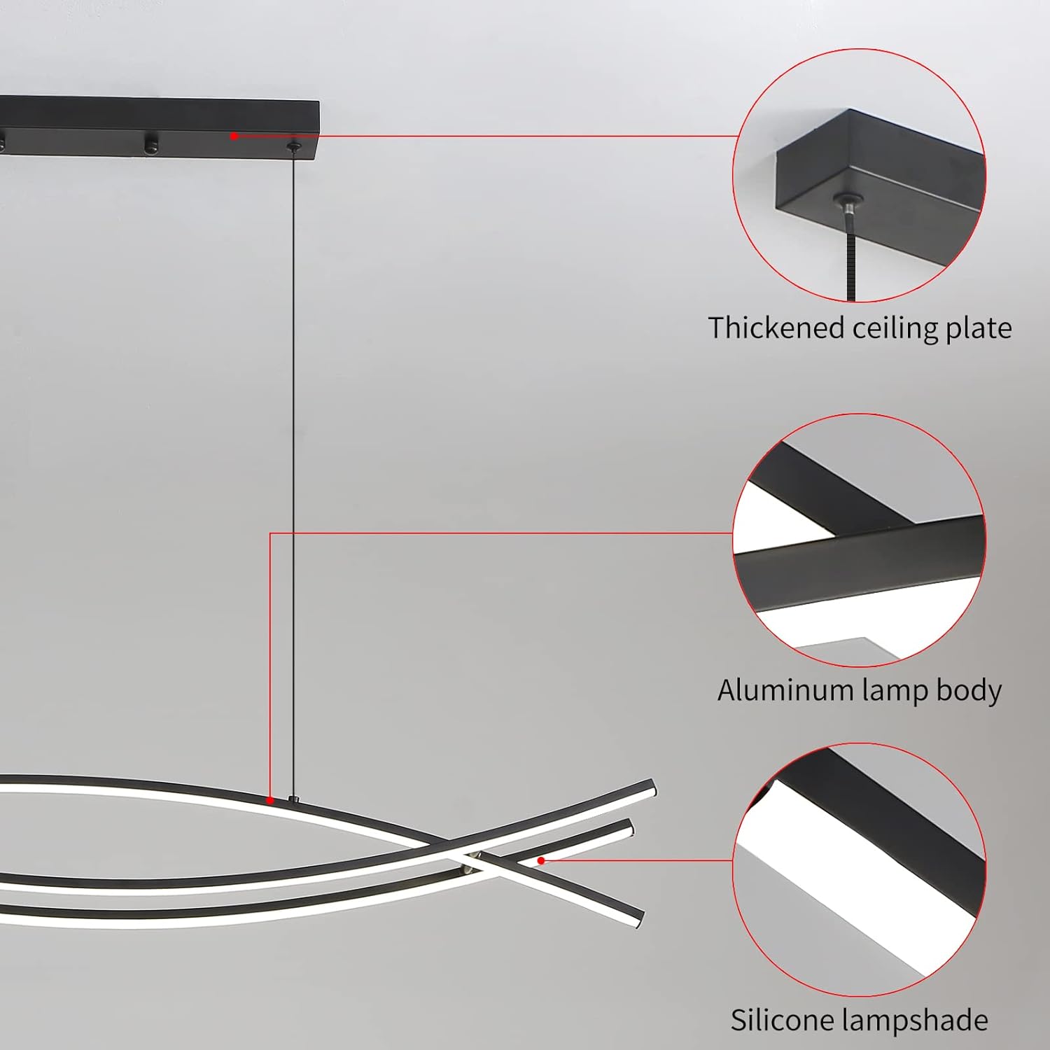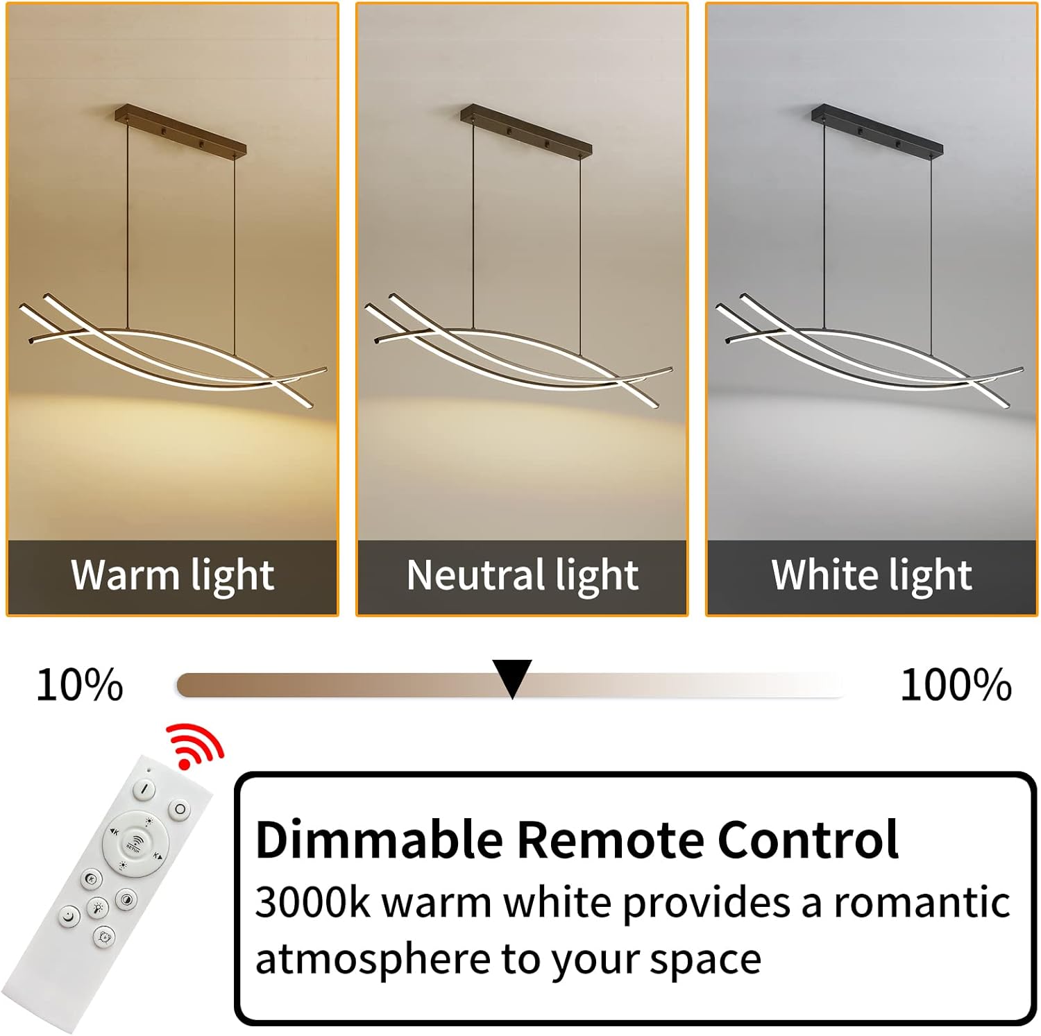Pendant Light, Linear Pendant Light LED Dimmable Hanging Light Fixture, LED Modern Curved Chandelier, Chandeliers for Dining Room