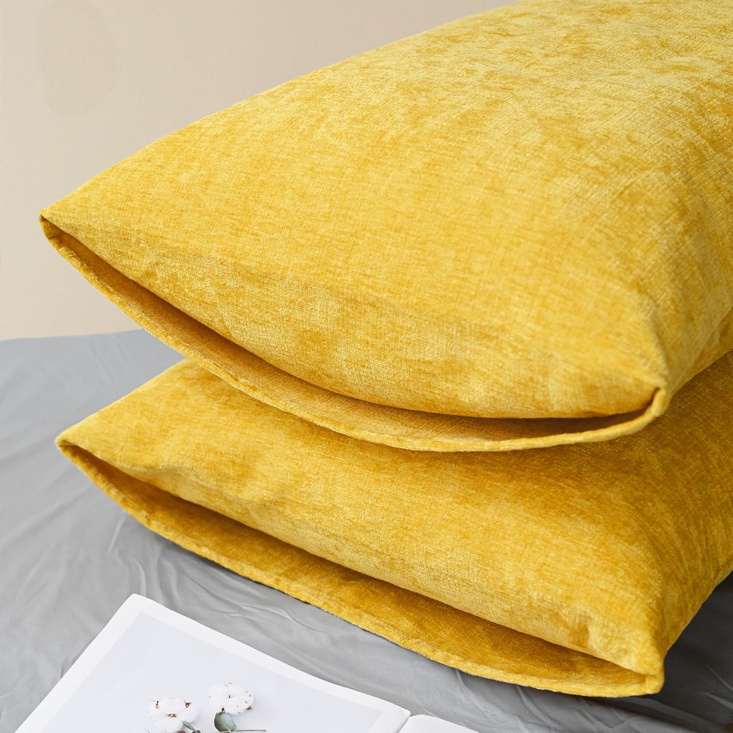 CaliTime Throw Pillow Covers Decorative 20 X 26 Inches Pack of 2 Cozy Chenille Standard Pillow Shams Cases for Couch Sofa Bed Living Room Home Mustard Yellow