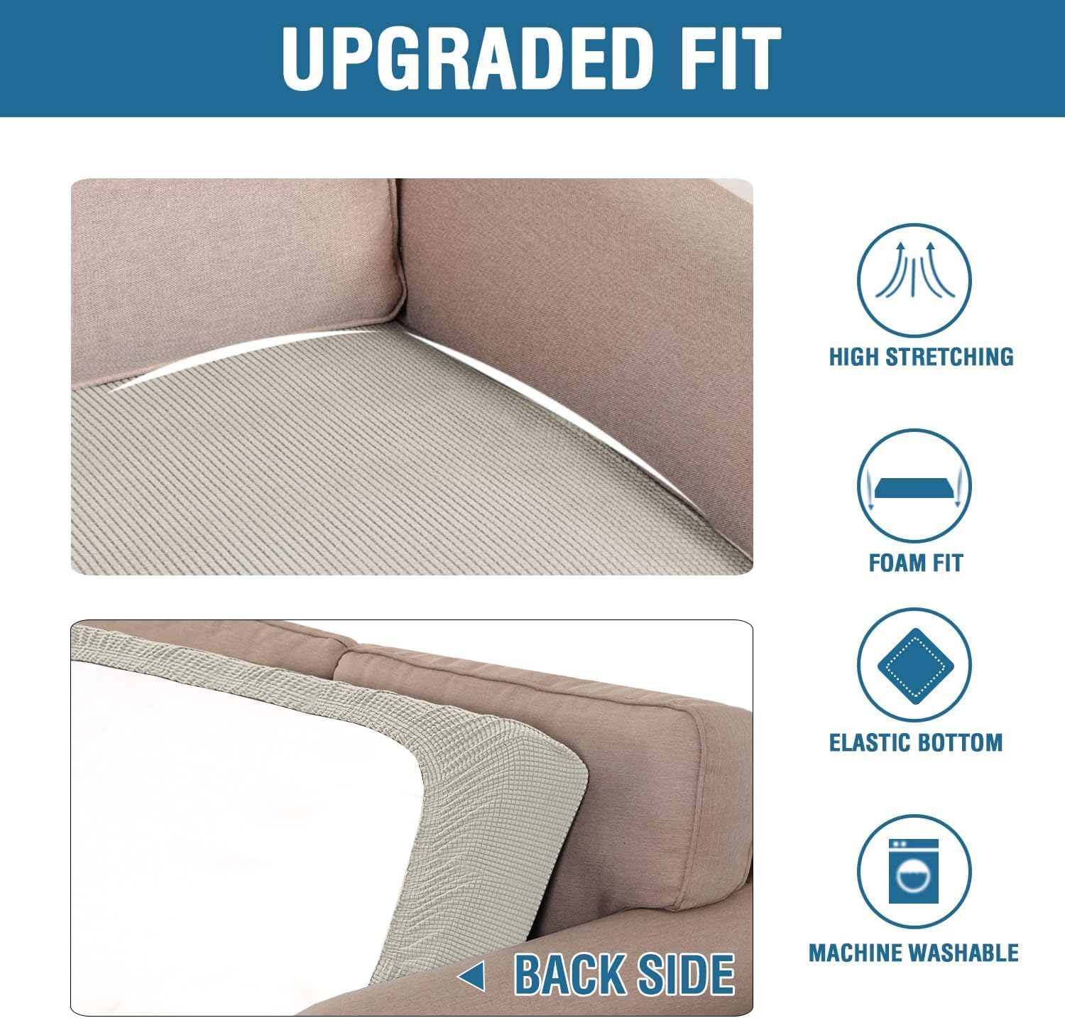H.VERSAILTEX Super Stretch Individual Seat Cushion Covers - Sofa & Couch Cushion Slipcover Sets - Thick Jacquard Textured Twill Fabric (3 Piece, Island Fossi)