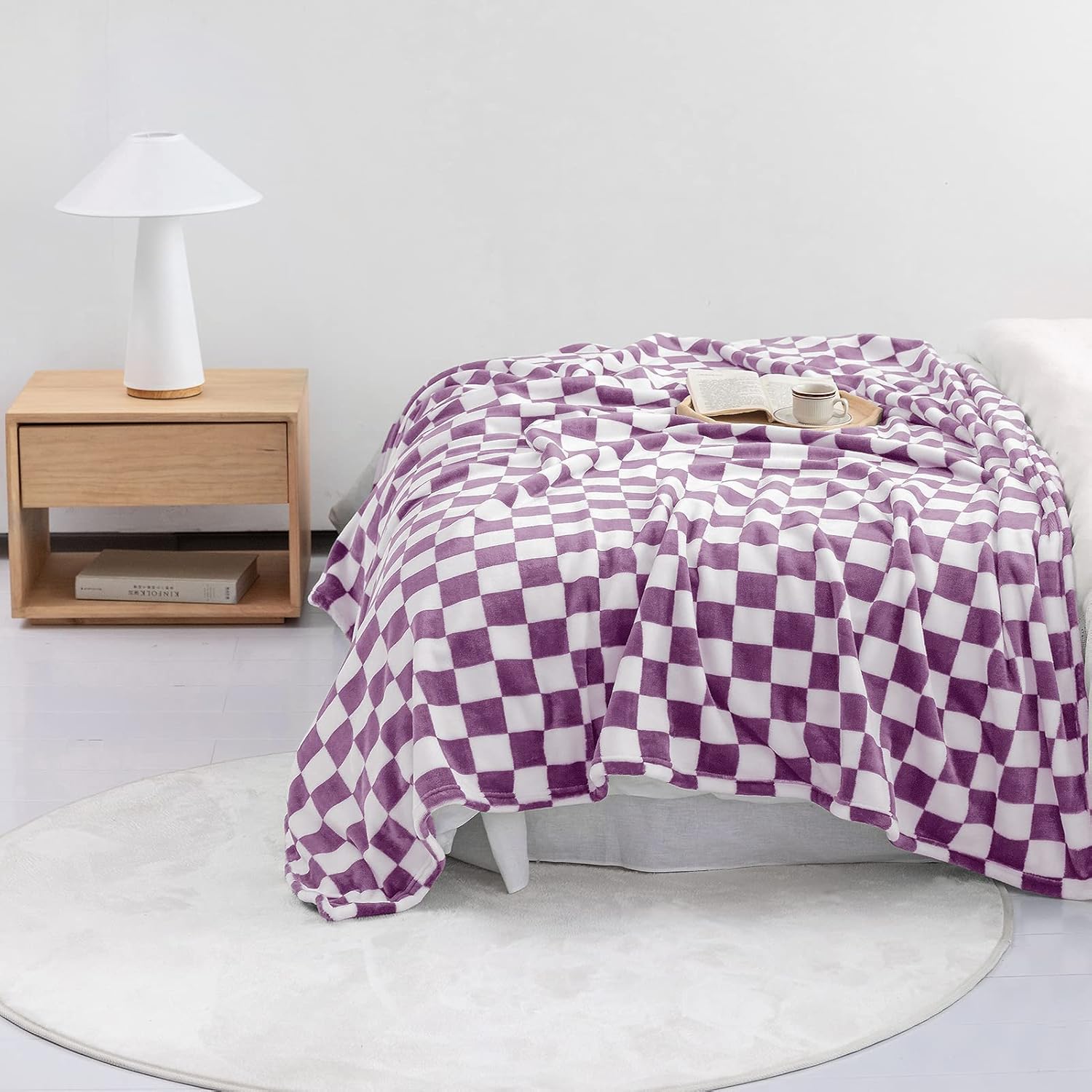 LOMAO Throw Blankets Flannel Blanket with Checkerboard Grid Pattern Soft Throw Blanket for Couch, Bed, Sofa Luxurious Warm and Cozy for All Seasons (Purple, 60"x80")
