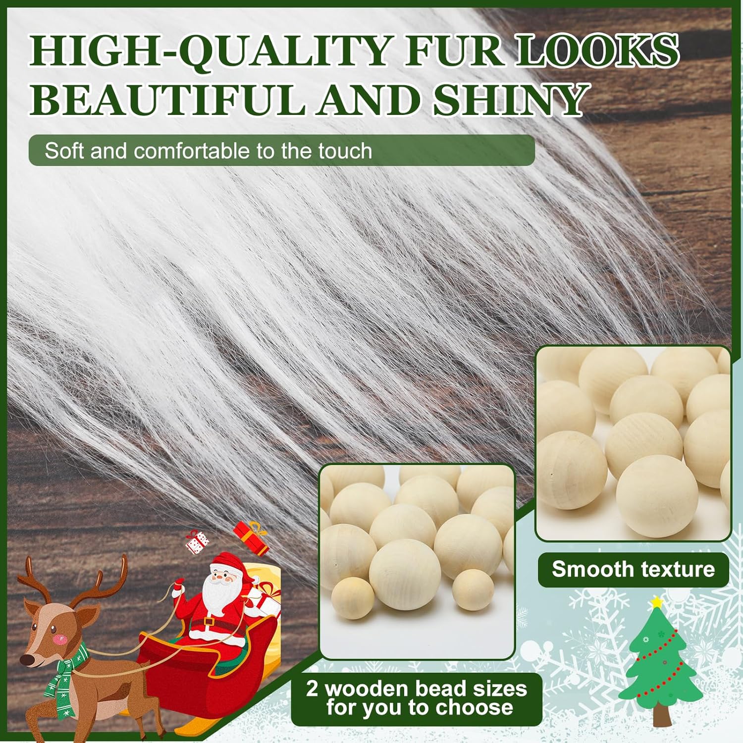 60 Pcs Gnomes Beard Sets Faux Fur Pre Cut Gnomes Beard Foam Cone Foam Handmade Wood Balls for Halloween Christmas Day Crafts(White)