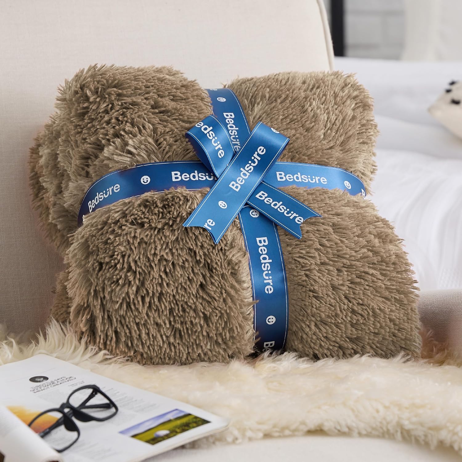 Bedsure GentleSoft Fuzzy Sherpa Faux Fur Twin Blanket, Brown Cozy Gifts for Women Men, Soft Fleece Plush Warm Minky Thick Blanket Twin Size for Bed, Couch, Brown Room Decor Dorm Essentials, 60x80