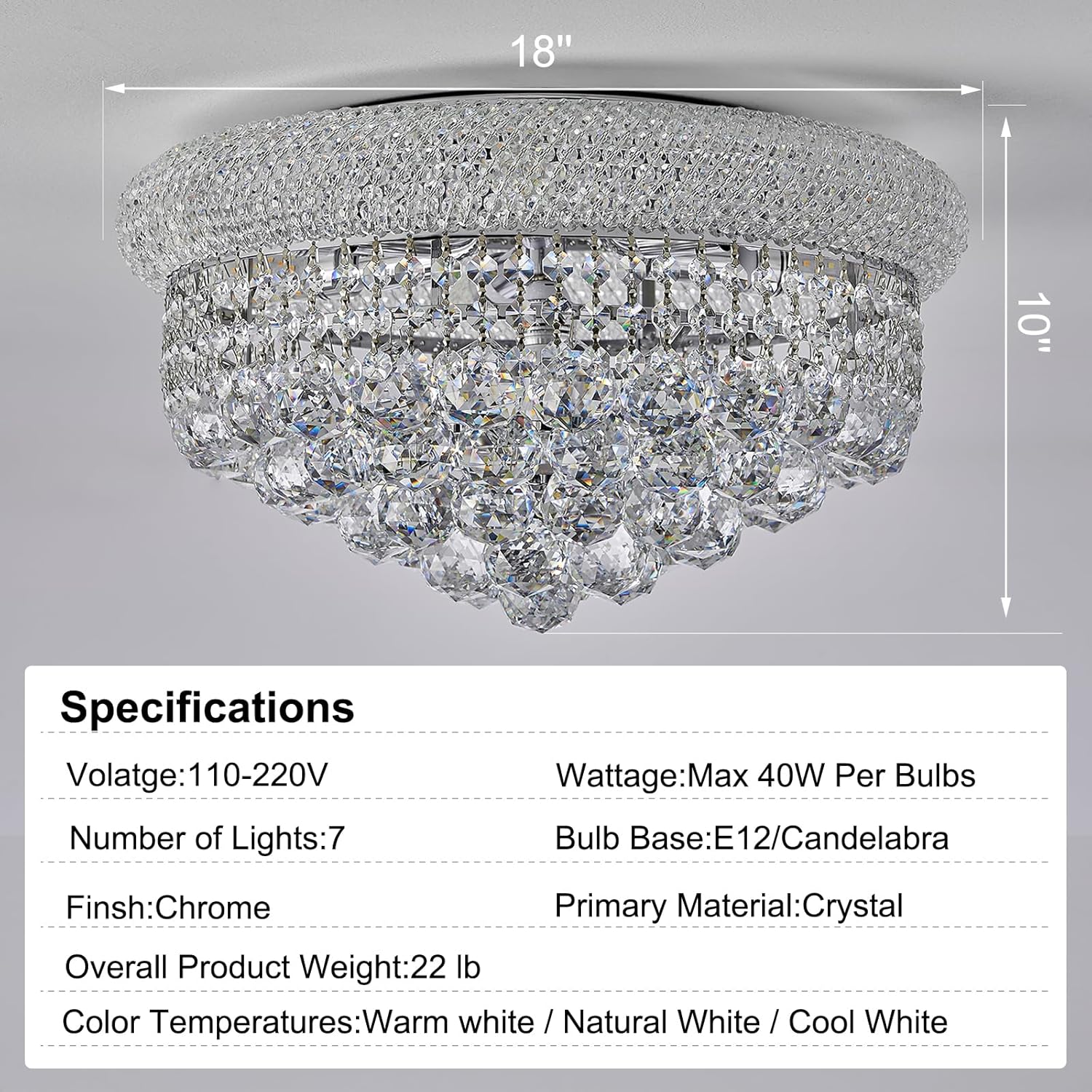 7-Light Crystal Flush Mount Chandelier Ceiling Light Fixture for Living Room Dining Room Bedroom Foyer Entryway Hallway Closet Bathroom (Chrome D18)