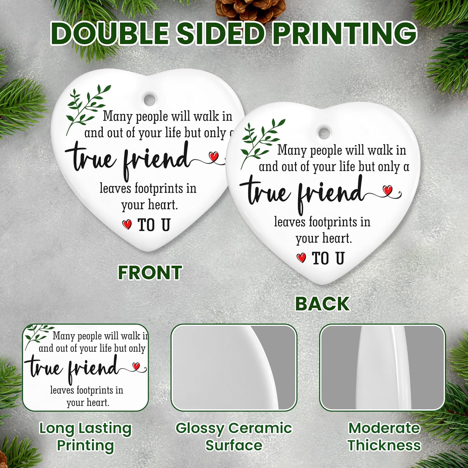 OASSIE Friend Gifts for Women - Ceramic Christmas Ornaments 2025 for Tree Decorations - Friendship Gifts for Women Friends, Inspirational Friend Gift Ideas, Friends Ornament for Christmas Decorations