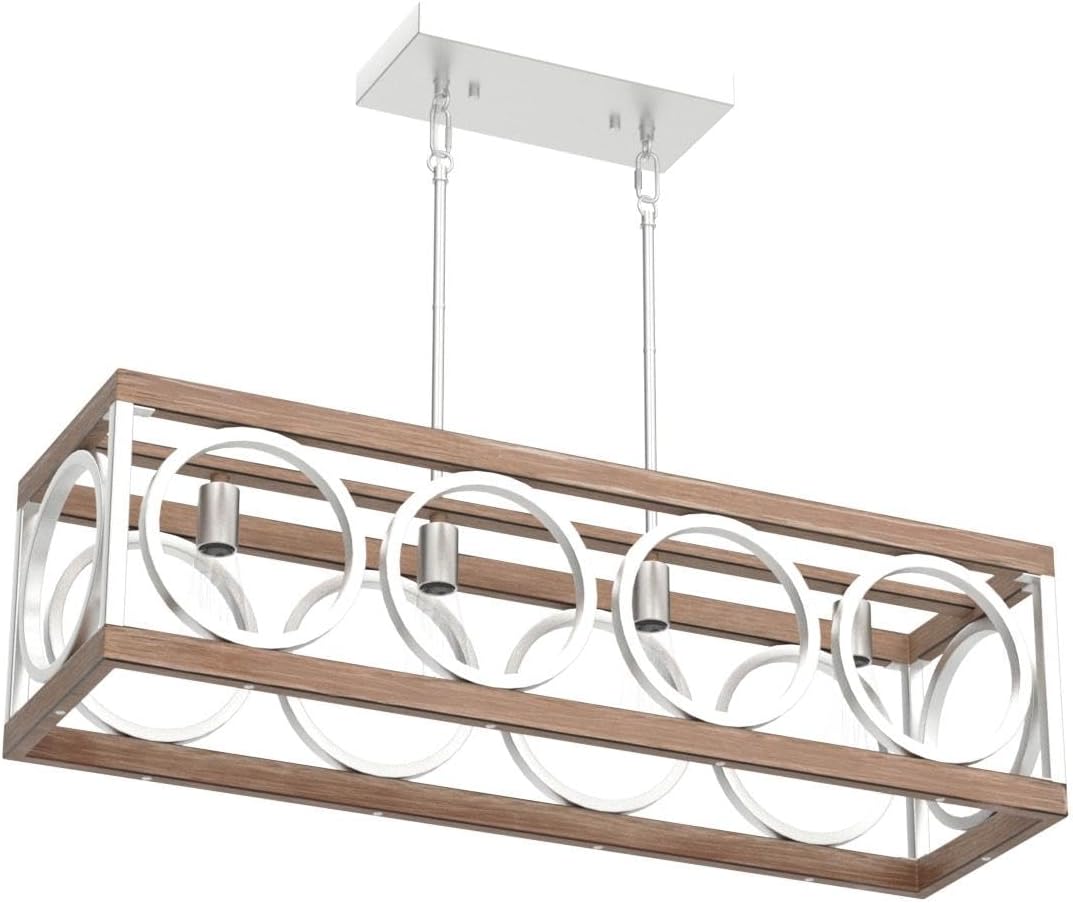 - VINTAGE FARMHOUSE CHANDELIER: The open-cage farmhouse dining room light fixture features a rectangle frame in distressed wood grain finish metal with barn-inspired cricular design stretching across each side, recalling reminiscent of classic, costal and vintage aesthetics. Please note that because the product is painted by hand, Each chandelier is unique in appearance and the uniformity of appearance cannot be strictly consistent.