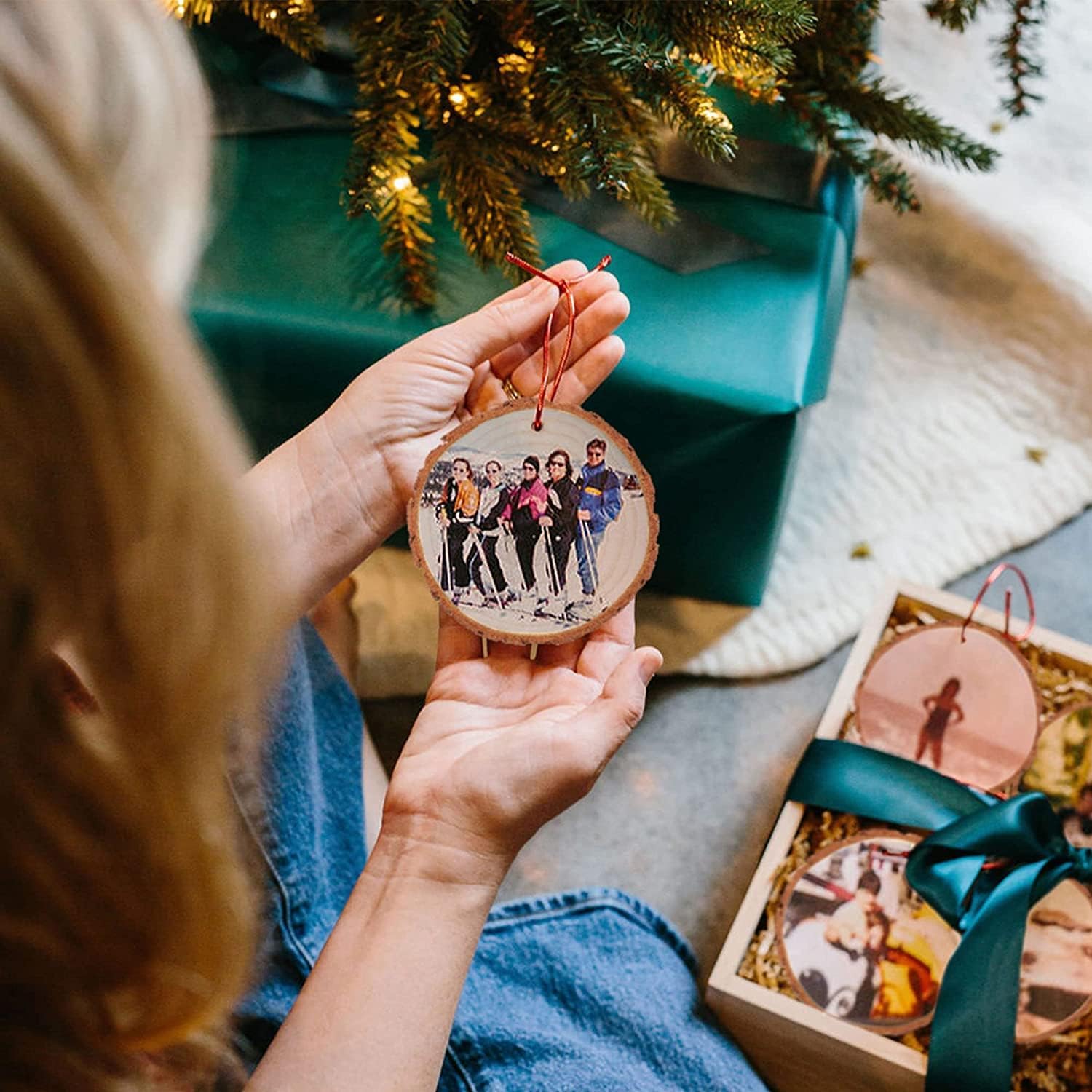 - [NATURAL WOOD SLICES] The unfinished wood ornaments are made from natural pine with tree barks. These wood slices for centerpieces are dried naturally and sawn carefully into wood pieces. After cutting, wood discs keep the original beauty of wood grain with a rustic feel. No rough surfaces, the center part is perfect for you to paint, draw, stain, carve and write on. Each christmas ornaments wood has a small pre-drilled hole that can be threaded with jute rope, cotton string, ribbon or lace for