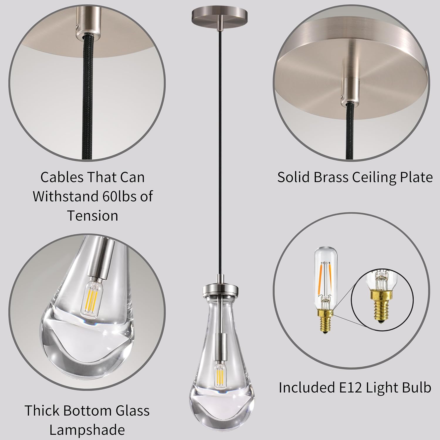 - 【Hand-blown Raindrop Pendant Light】The nickel pendant light kitchen island is suitable for all styles of decoration. The raindrop-shaped glass shade reflects a rich light effect in the light, combining the beauty of modernity and nature to enhance the premium feel of the space for you.