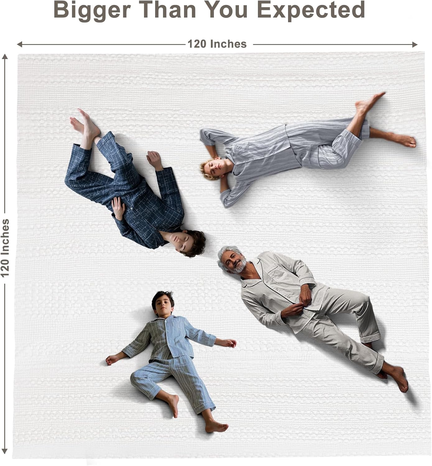 PHF 100% Cotton Waffle Blanket Oversized King 120"x120", Lightweight Breathable Extra Large 10'x10' Summer Blankets for Bed, Giant Big Luxury Aesthetic Woven Bedding for Home Decor, White