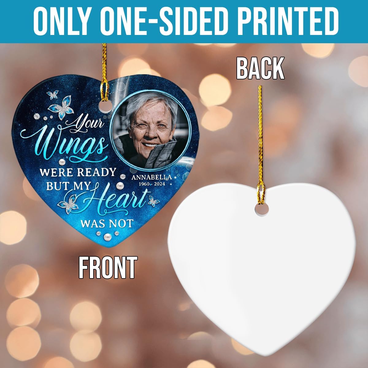 Personalized Memorial Ornaments with Photo Picture Your Wings were Ready But My Heart was Not Heart Shaped Ceramic Ornament Custom Pictures Heaven Keepsake Sympathy Gift Christmas Tree Décor