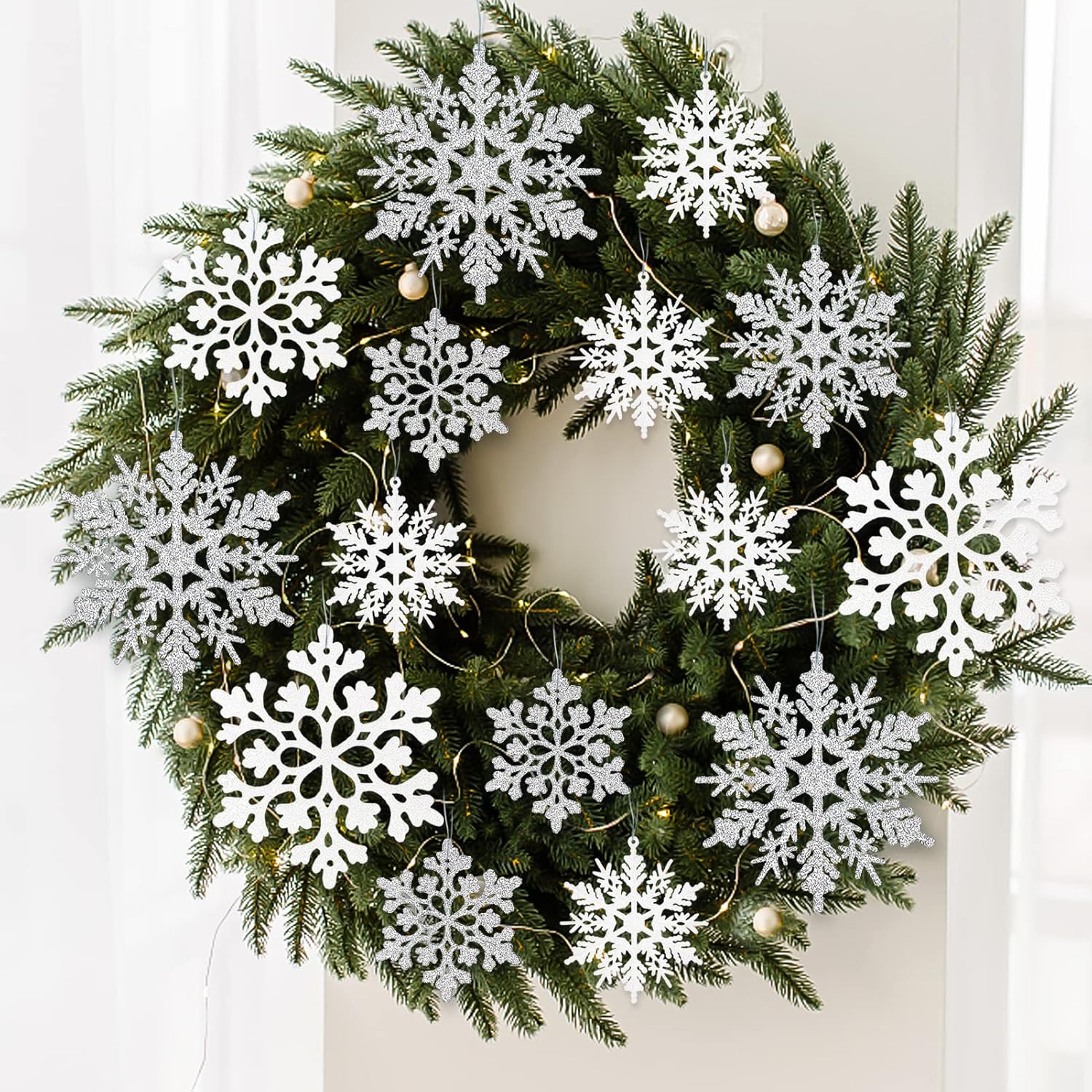 - Premium Material:Our snowflake ornaments are well made of hard plastic material with sparkly glitter, sturdy and shiny, lightweight but durable for indoor or outdoor use, and they can last the whole holiday season. Then they can be saved and reused for next Christmas or winter party decorations