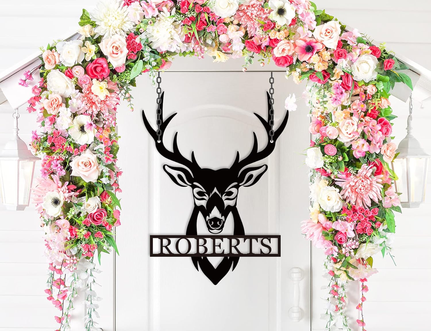 Personalized Deer Head Metal Sign | Christmas Deer | Custom Metal Deer Sign | Deer Antlers Sign | Outdoor Wall Decor | Last Name Sign | Deer Monogram | Wall Decor Rustic Home | Housewarming Gifts