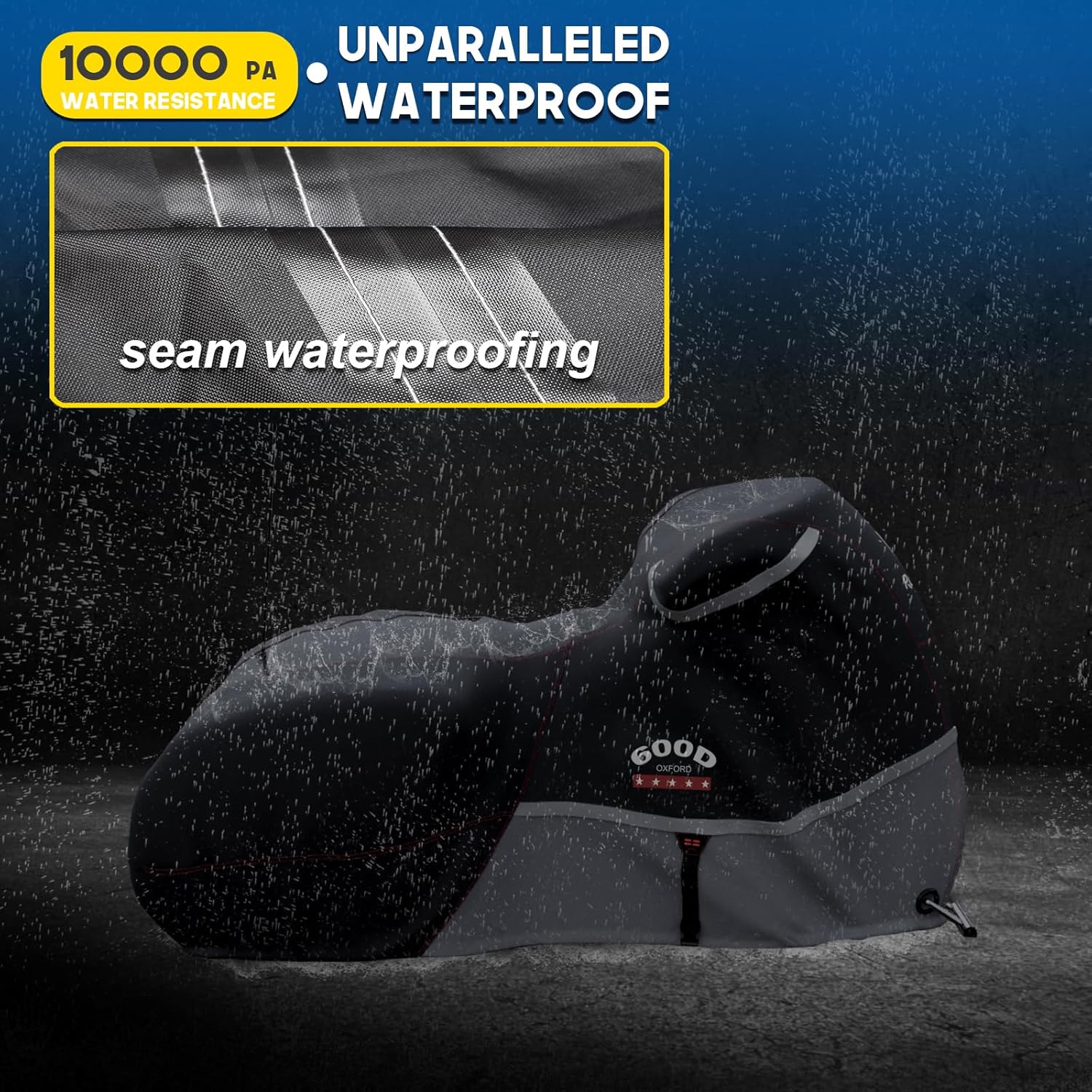 - 【100% 600D Oxford cloth】: The motorcycle cover, weighing 6.6lb, is almost thicker and solider than those on the market. The fabric is resistant to aging and ripping, and UV proof, dustproof and rainproof.
