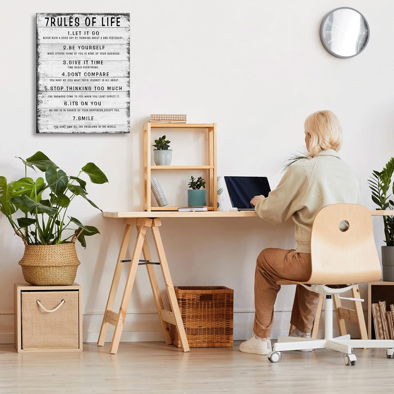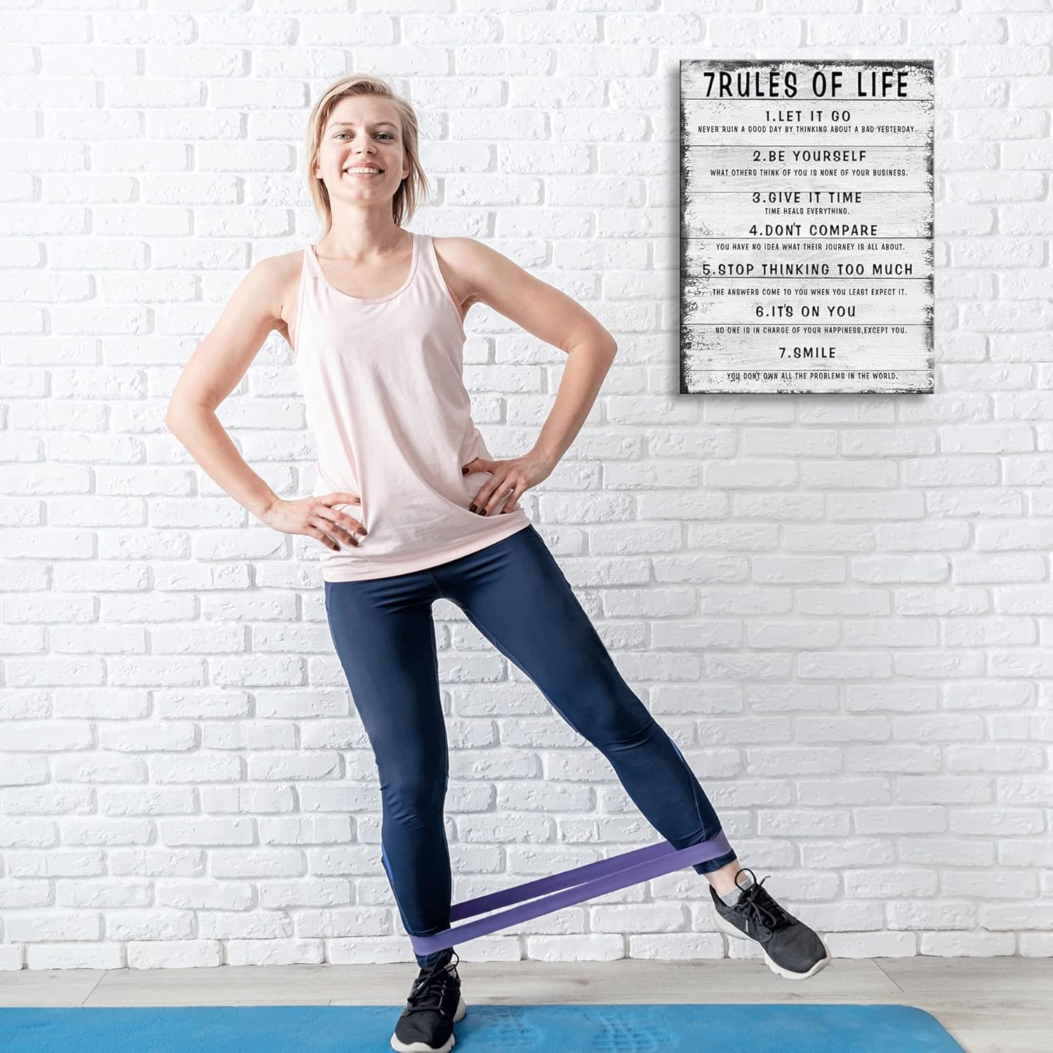 7 Rules of Life Wall Art Motivational Inspirational Poster Printed on Canvas Wall Decor for Living Room or Office Size11.5 x 15 Inch - Framed Canvas Prints For Bedroom or Home Art Decoration Positive
