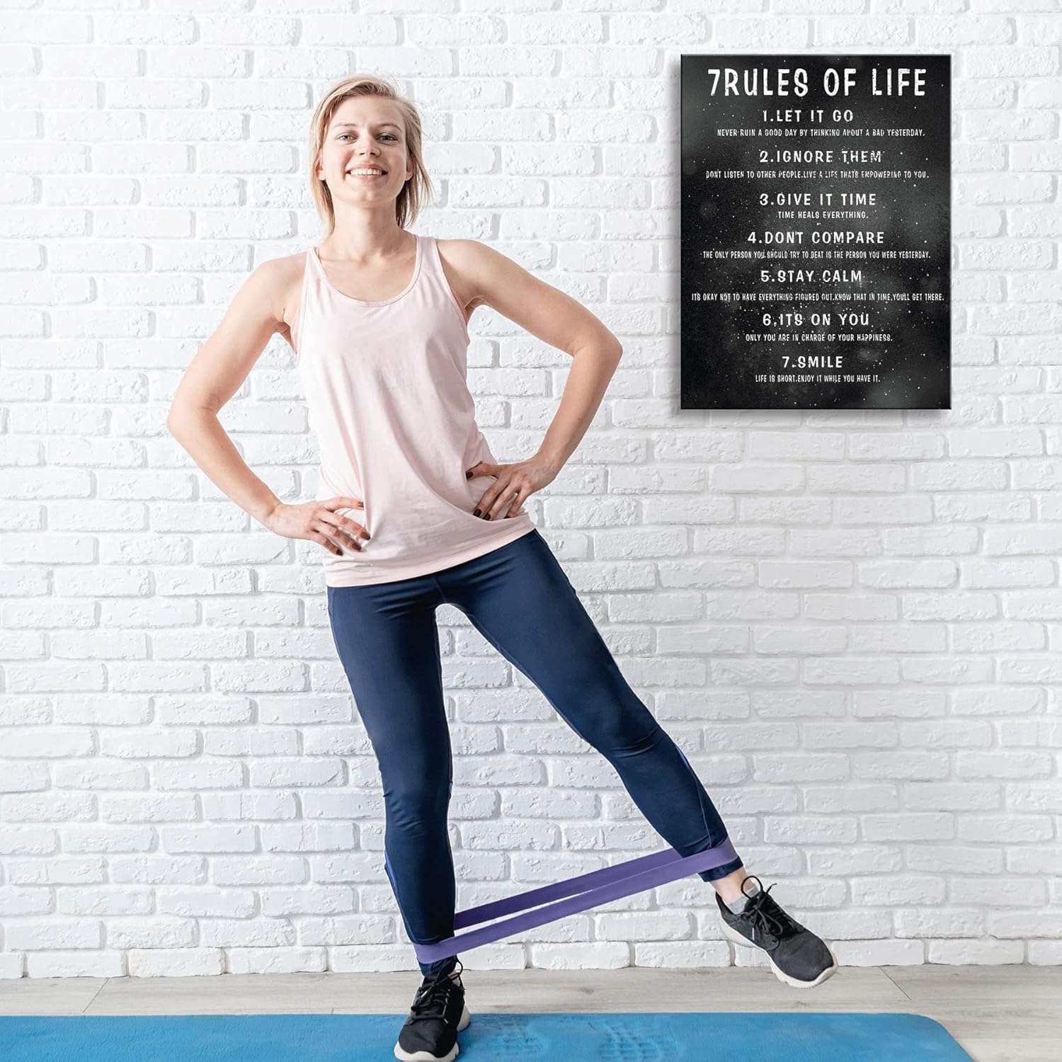 7 Rules of Life Wall Art Motivational Inspirational Poster Printed on Canvas Wall Decor for Living Room or Office Size11.5 x 15 Inch Framed Canvas Prints For Bedroom or Home Art Decoration Positive